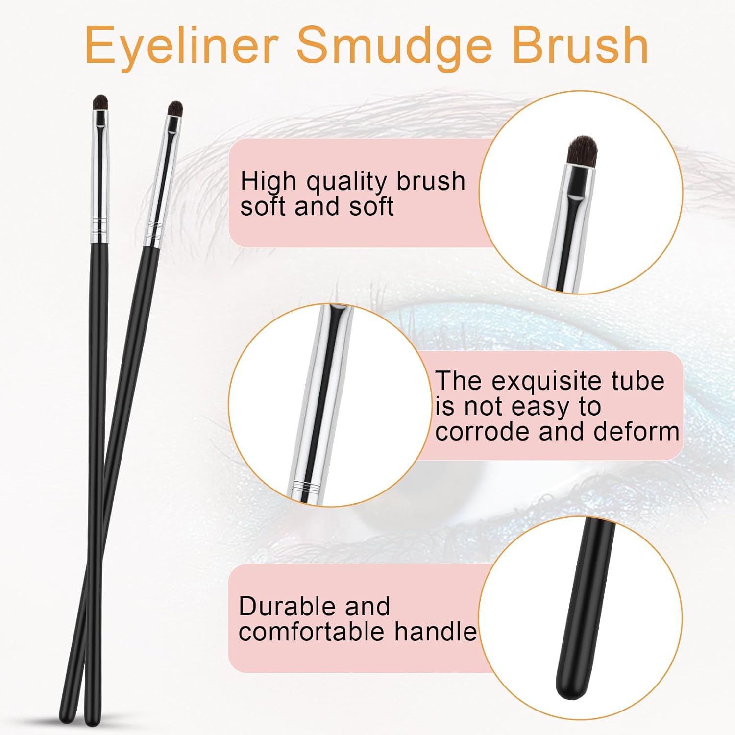 WLLHYF Eyeliner Smudge Brush 2PCS Professional Eye Makeup Brushes Ultra Thin Eyebrow Brush Kit Soft Makeup Tool Eyeshadow Tight Liner Brush for Eyeshadow Gel Powder Cream Women