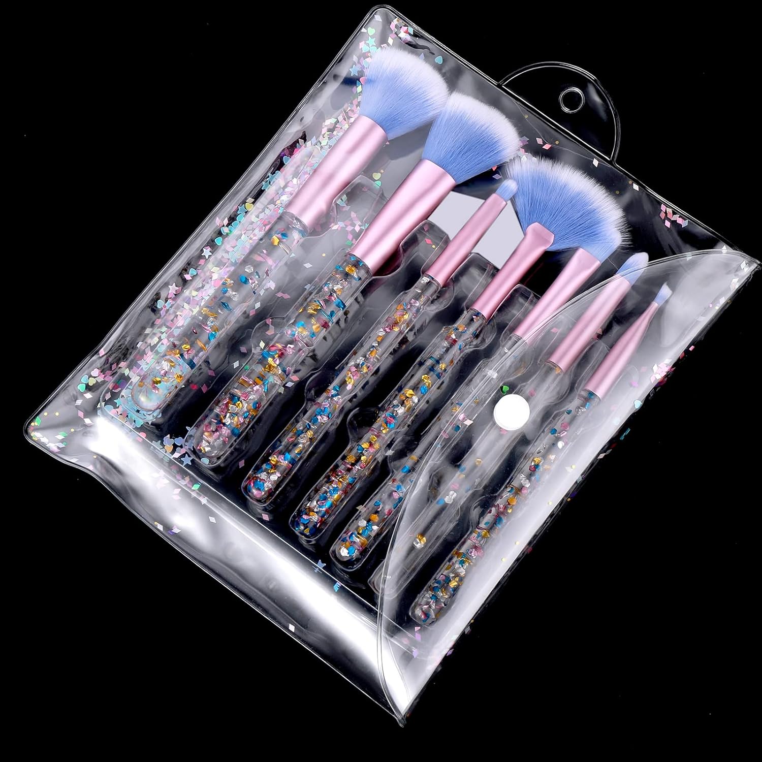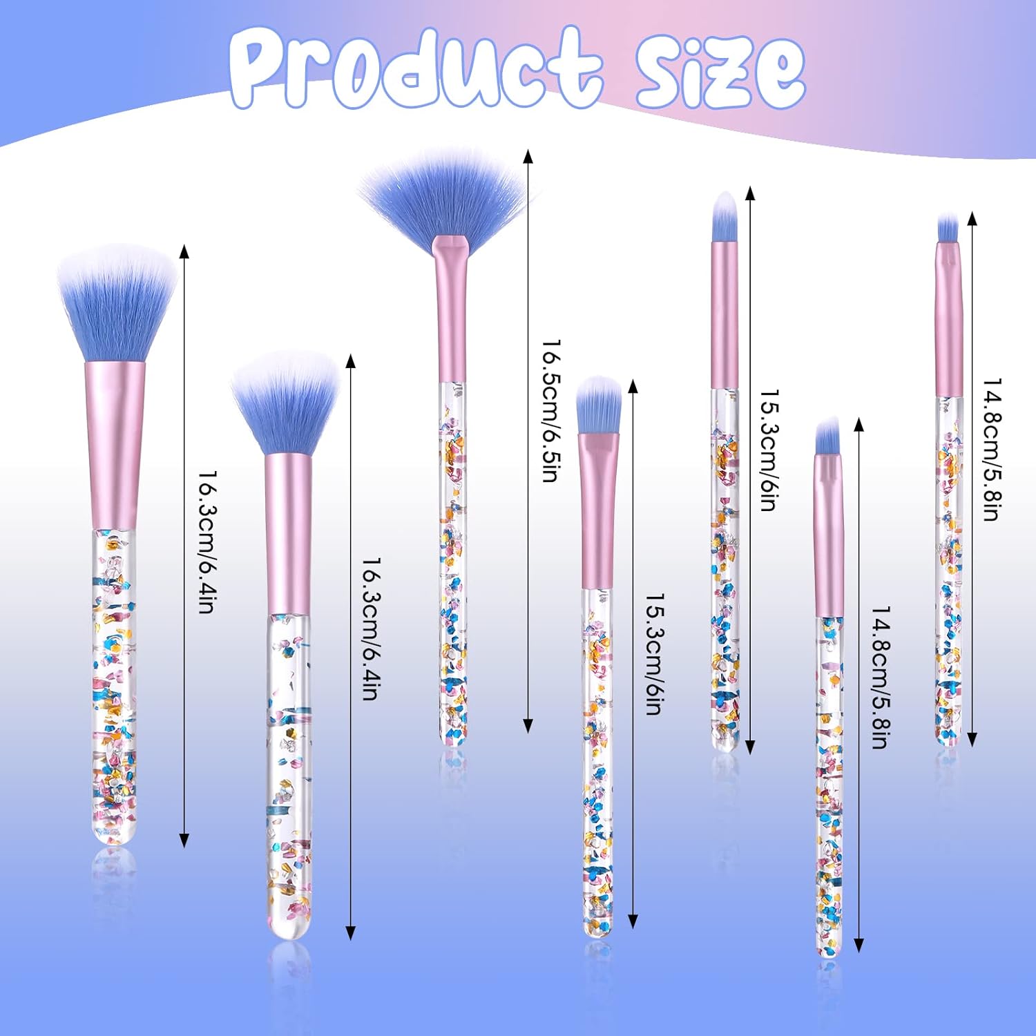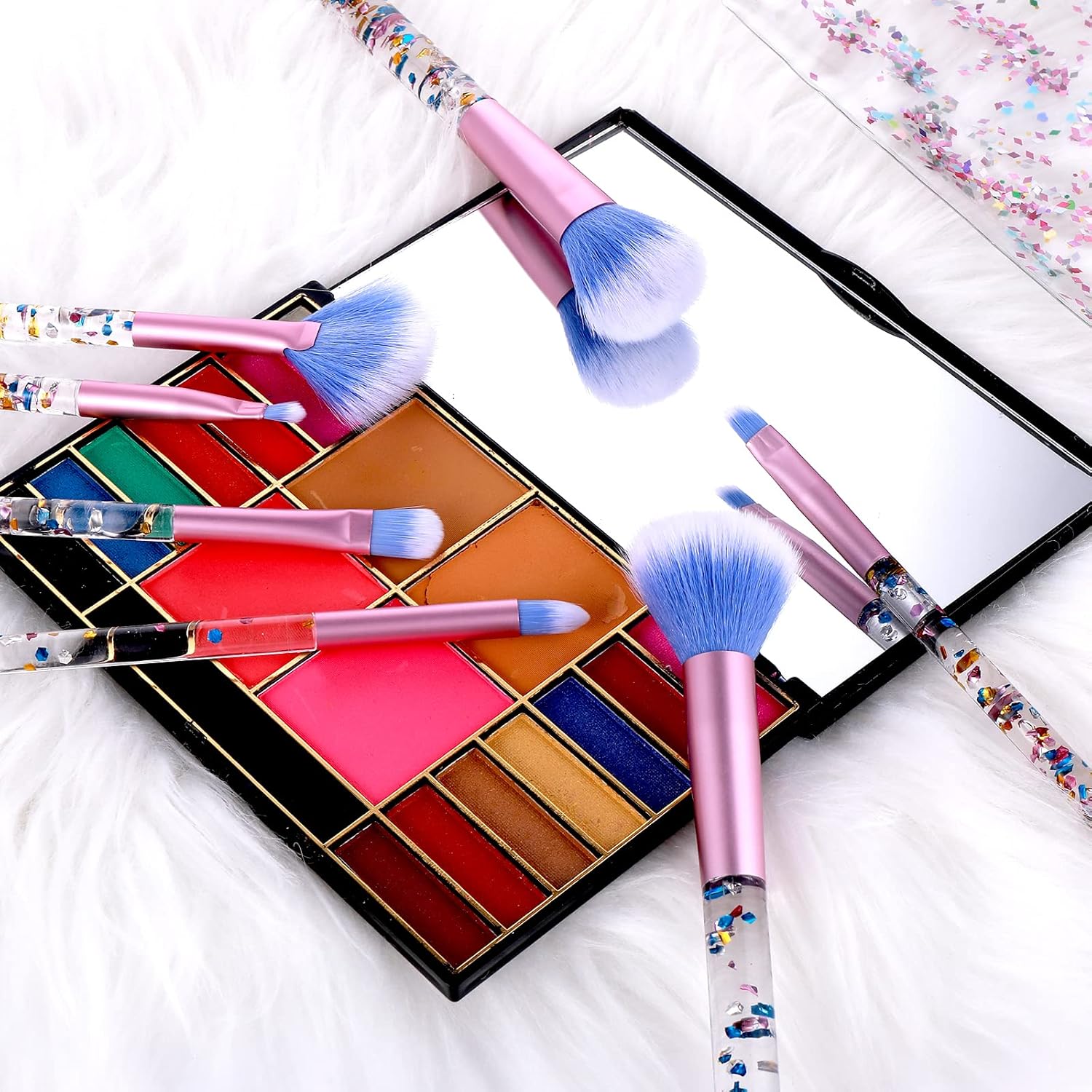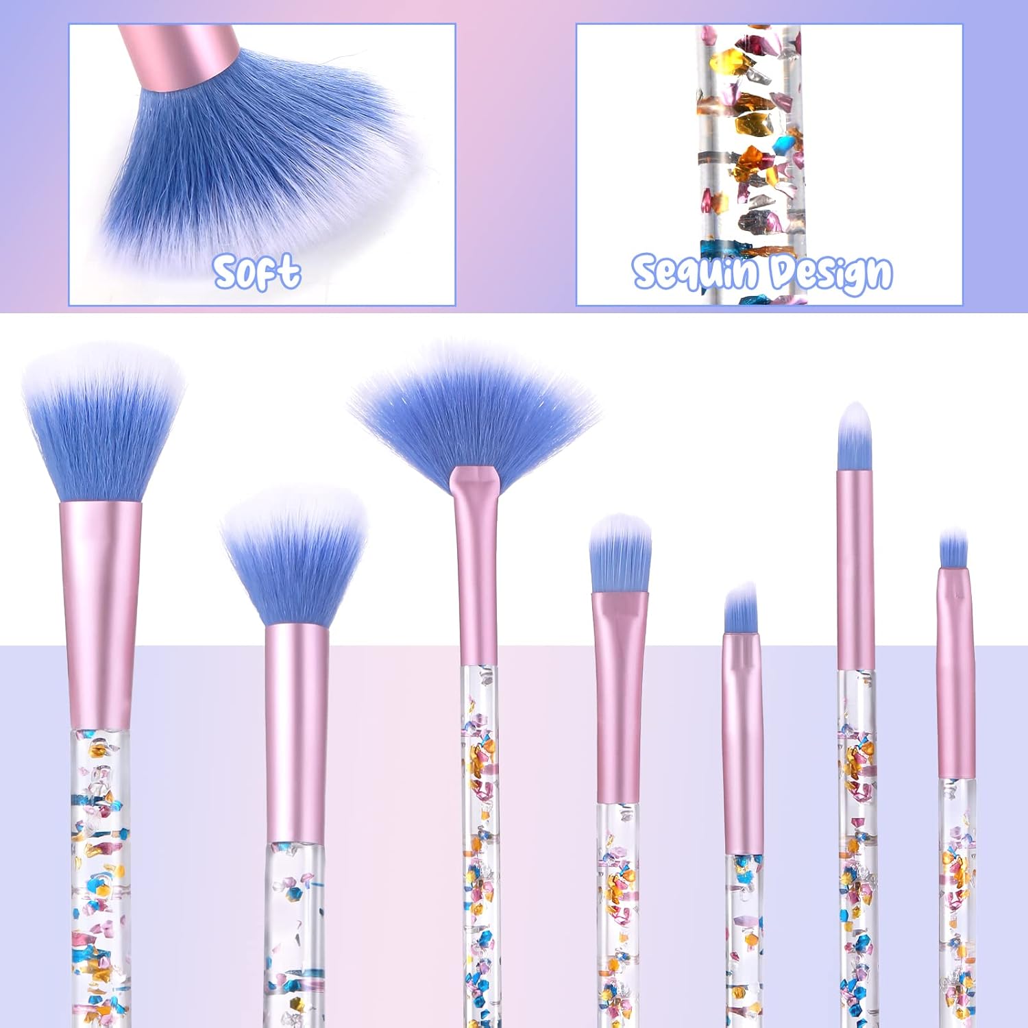 【Stijlvolle make-upborstelgereedschap】Modieuze en professionele make-upborstels handvat met glanzende kristallen glitter aan de binnenkant. Wanneer u de make-upset gebruikt, geeft de aanwezigheid van pailletten mensen een modieuze en aangename visuele ervaring, die er zoeter en dromeriger uitziet.