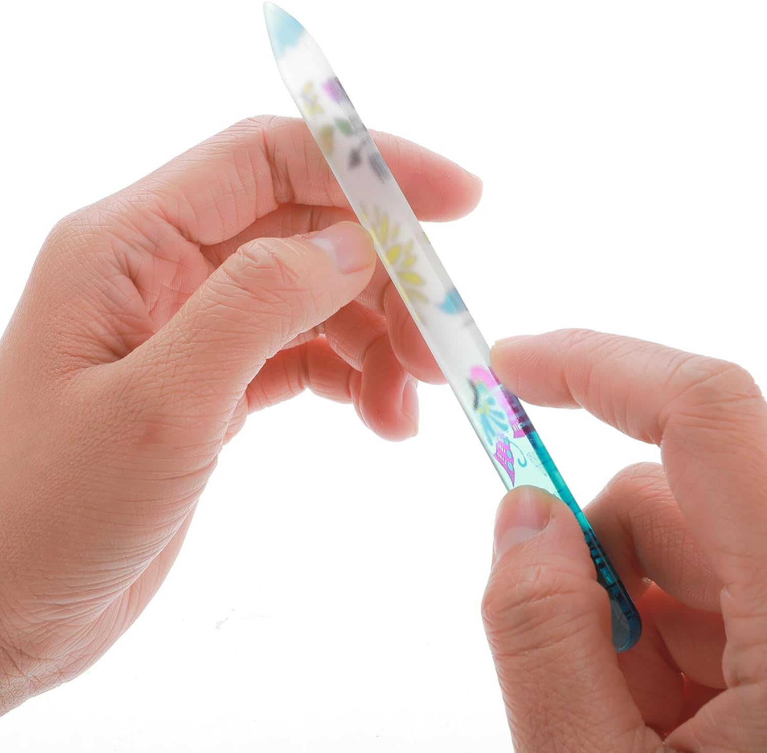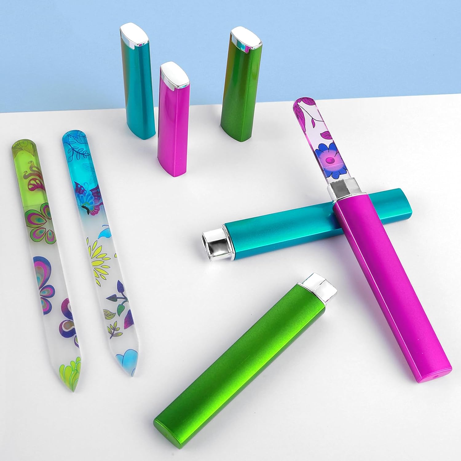 WLLHYF Glazen nagelvijl, 3 stuks nagelvijl Professionele natuurlijke dubbelzijdige manicure Care Tool Kit Wasbare rechthoekige nagellak voor volwassenen Feature: sterk en stevig Lichtgewicht en draagbaar Eenvoudig te gebruiken Beschrijving: Categorie: Nagelvijl Kleur: groen, blauw, roze rood Materiaal: glas Functie: nagels polijsten, bloemontwerp Productgrootte: 5.51 × 0.47 × 0.3 cm/14 × 1.2 × 0.3 cm Afmetingen van de opbergdoos: 5,91 × 0,71 × 0,4 inch/15 × 1,8 × 1 cm Verpakking: zak Verpakking lijst: 3 stuks × nagelvijl