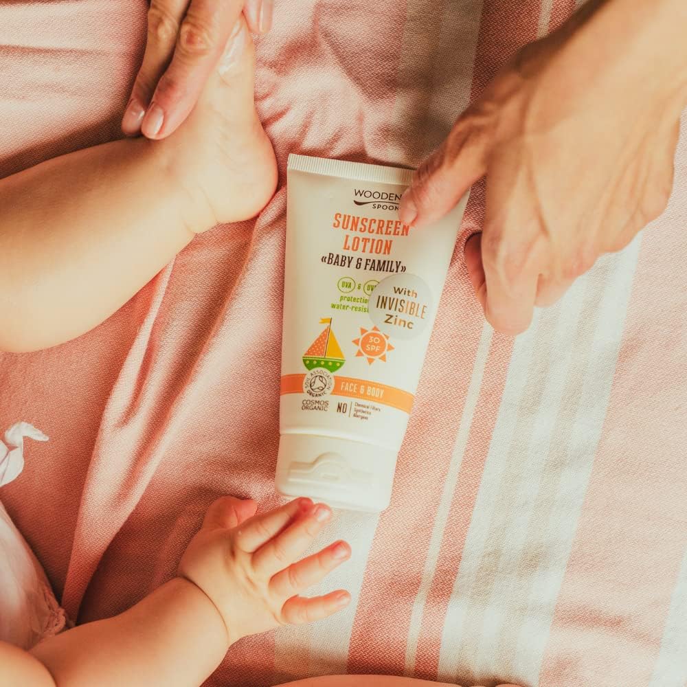 Wooden Spoon Biologische Zonnebrandcrème Baby en Familie SPF 30 – 100% Natuurlijk, Onzichtbare Zink, Geen Witte Waas, Hypoallergeen, Vegan, Waterbestendig – 150 ml