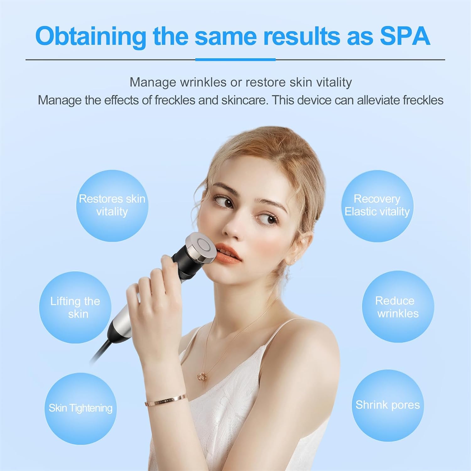 3. Hoge frequentie helpt de slappe huidconditie snel te verbeteren en maakt uw huid jonger en jonger. Na het eerste gebruik voelt u een strak gevoel op uw huid.