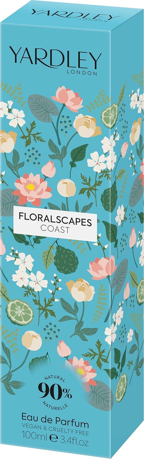 Yardley London Floralscapes Coast Eau de Parfum, Fruitige Damesgeur met Topnoten van Bergamot en Perzik en Muskusachtige Basis, Bloemig en Fruitig Parfum voor Vrouwen 100ml
