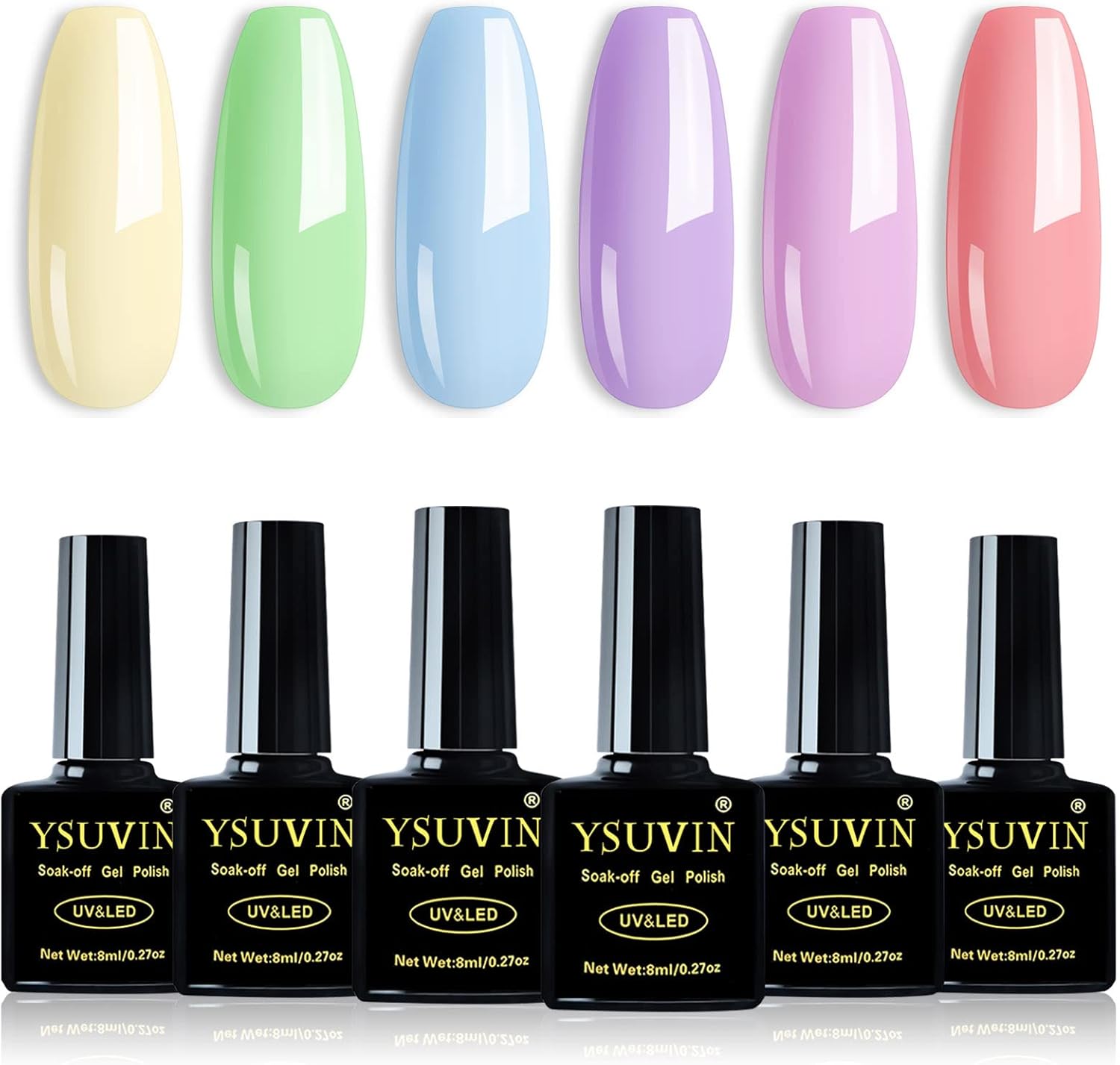 YSUVIN Gel Nail Polish Pastel, 6 Colors Summer Pastel Macaroon Gel Nail Polish Kit Green Blue Champagne Pink Purple Requires Base Top Coat UV Cured Gel For Beginners DIY Nail Art Manicure Salon