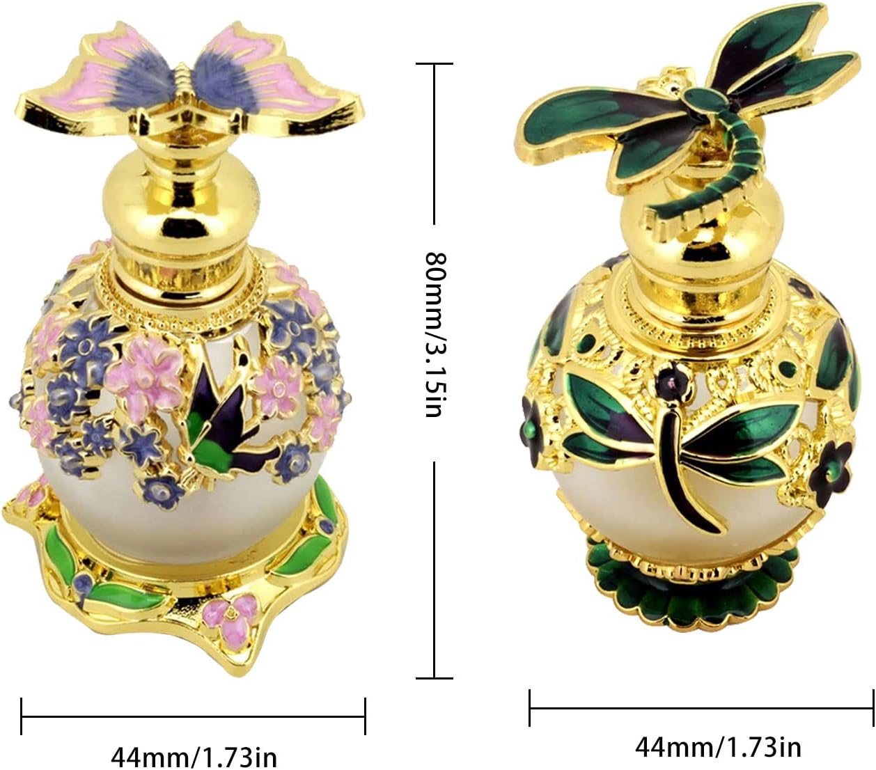 YWNYT 2Pcs Vintage Hervulbare Parfum Fles, 15Ml Vlinder/Bloem Parfum Flessen Lege Frosted Glas Essentiële Olie Fles Unieke Gift