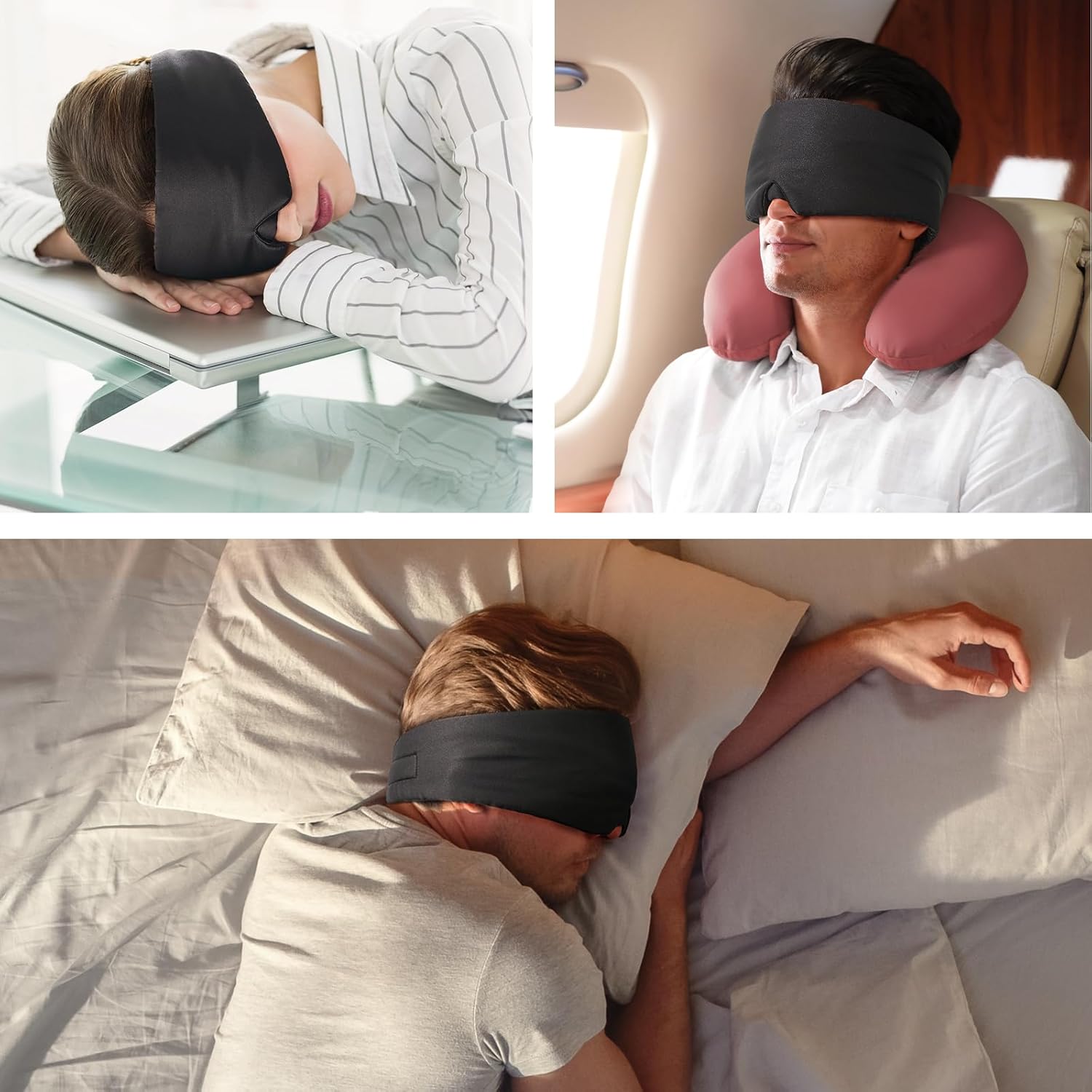 Zacht slaapmasker, verbeterde 3D-neuspads, ademend oogmasker met brede hoofdband, verstelbaar voor heren en dames, zwart
