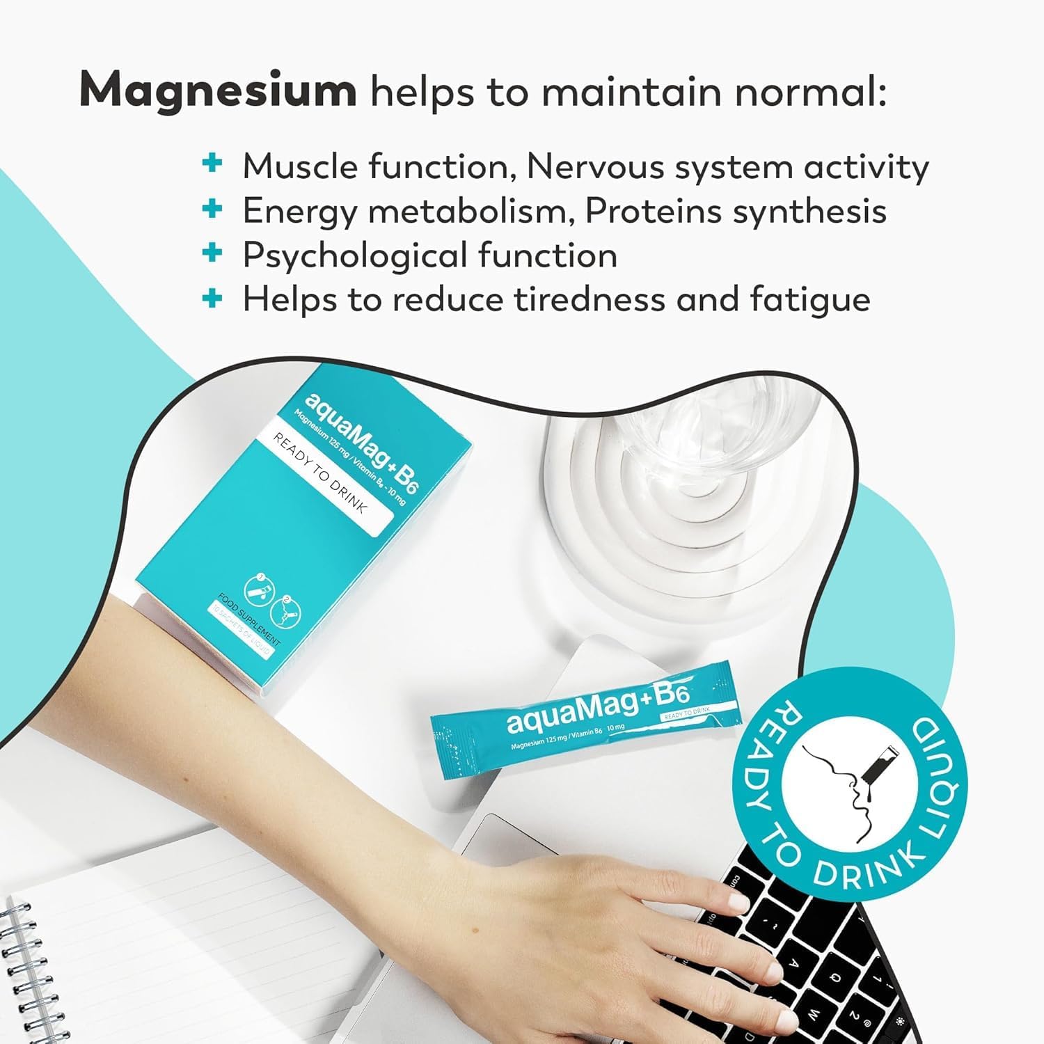 Natuurlijke magnesiumboost uit zeewater: onze AquaMag komt uit gezuiverd zeewater, natuurlijk rijk aan mineralen en bijzonder goed verdraagbaar. De kracht van de zee – in elke portie.