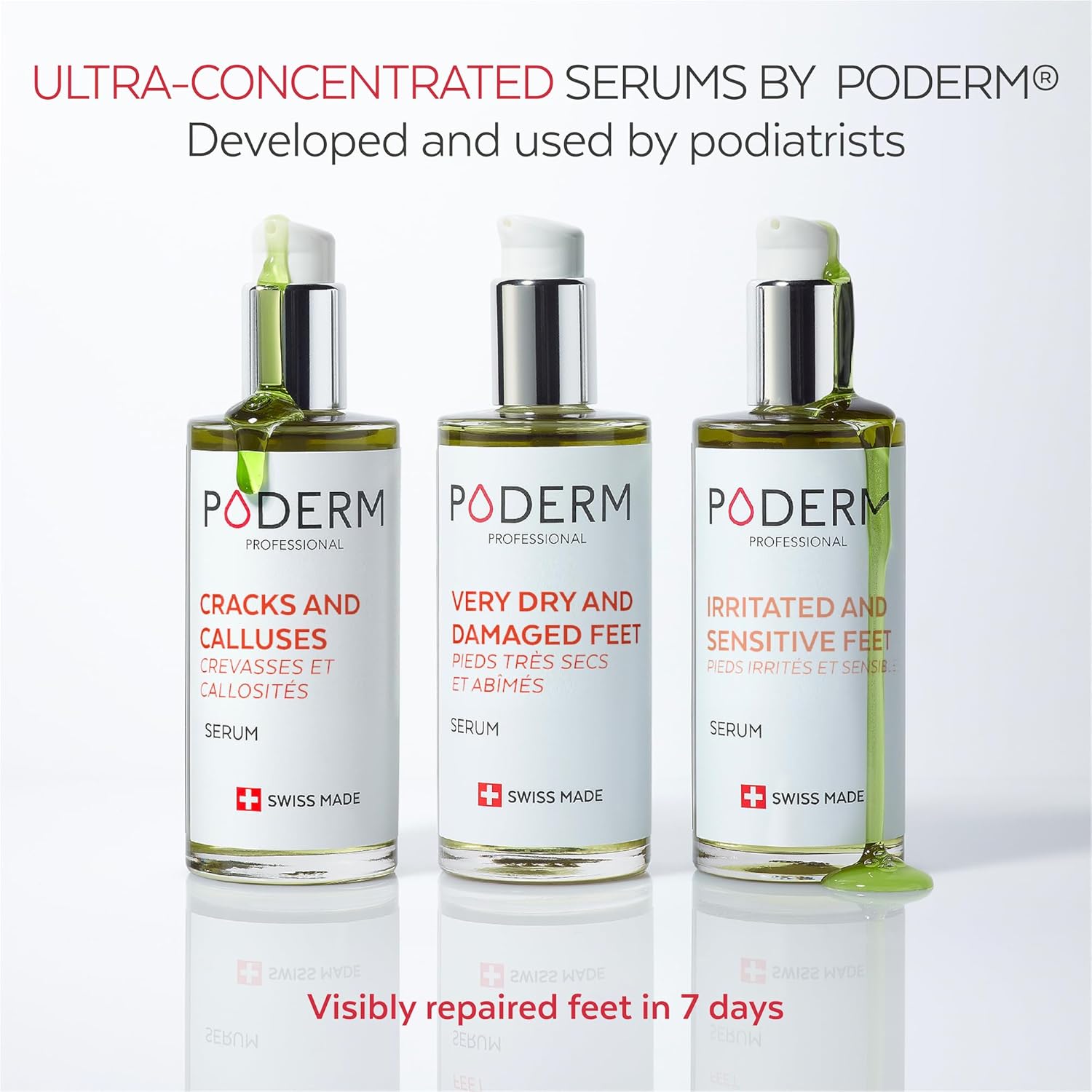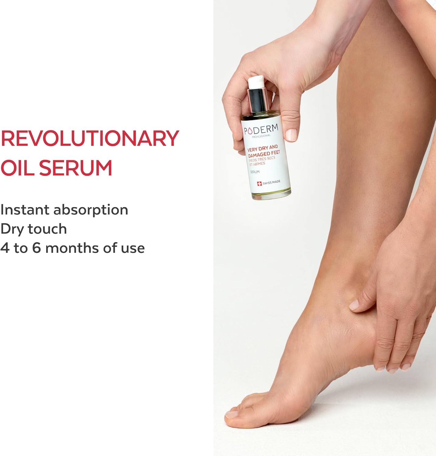 ✅ EGALISEERT EN VERZACHT RUWHEID: Het serum voor Zeer Droge en Beschadigde Voeten PODERM verzacht harde huid, egaliseert ruwheid en geeft de huid zachtheid en soepelheid. De droge olieformule van PODERM dringt direct door en geeft een zijdezachte aanraking. Zie zichtbaar herstelde voeten in 7 dagen.