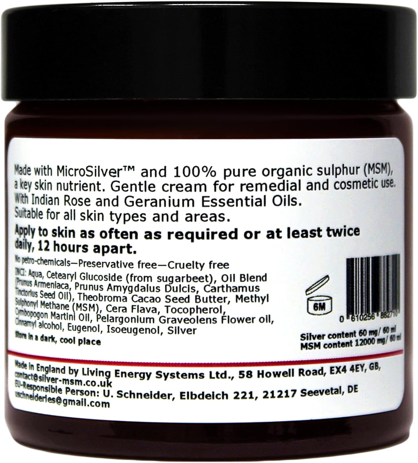 Kwaliteit van de huidverzorging Natuurlijke huidverzorging die uw huid aanvult met goede voedingsstoffen Bevat MicroSilver – tot 10x effectiever dan colloïdaal zilver Irritantvrij – onze crèmes bevatten geen conserveringsmiddelen of ingrediënten op basis van aardolie Onafhankelijke huidverzorging – handgemaakte, kleinschalige productie