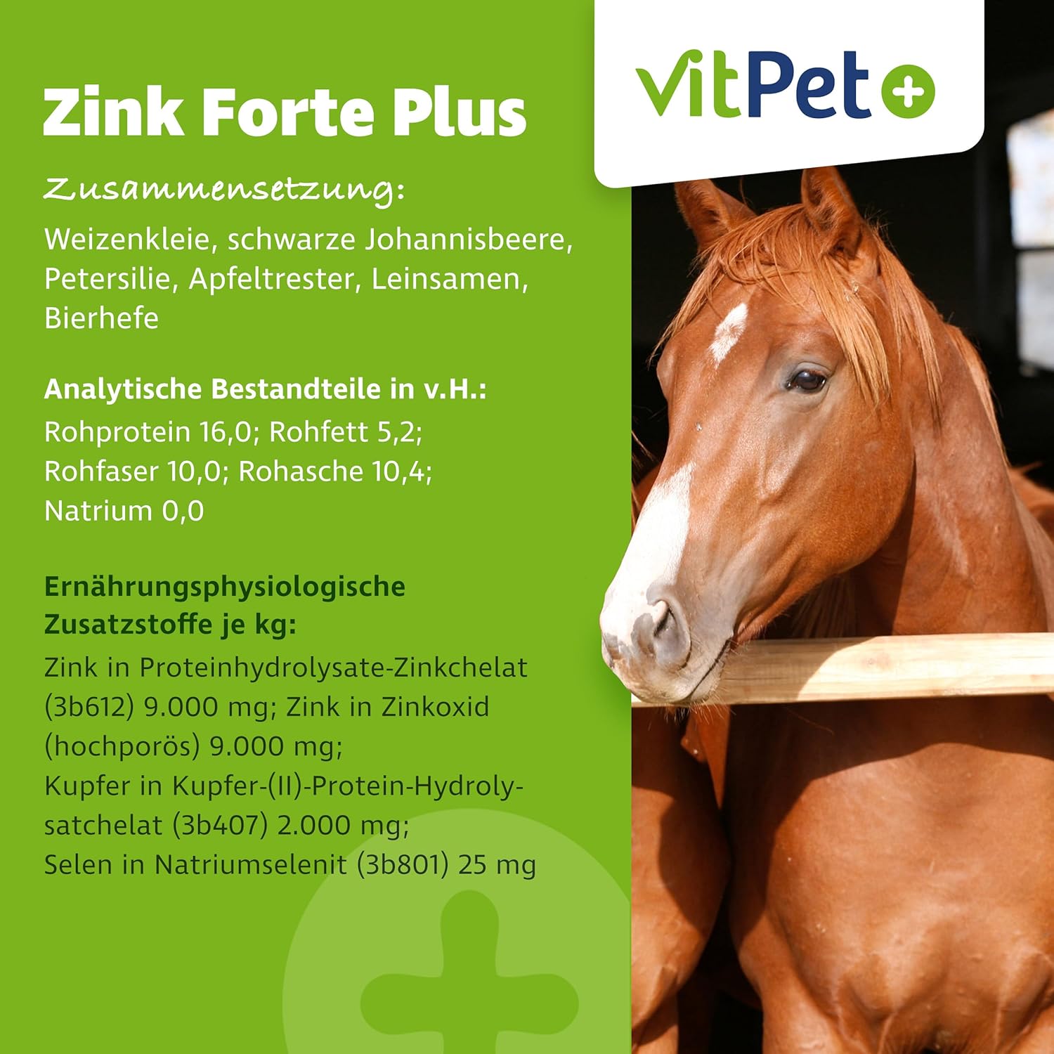 Jouw plus voor huid, vacht en huid: de evenwichtige toevoer met de vitale stof zink activeert de stofwisseling en versterkt het immuunsysteem. Het is essentieel voor de gezondheid van huid, vacht en hoeven.