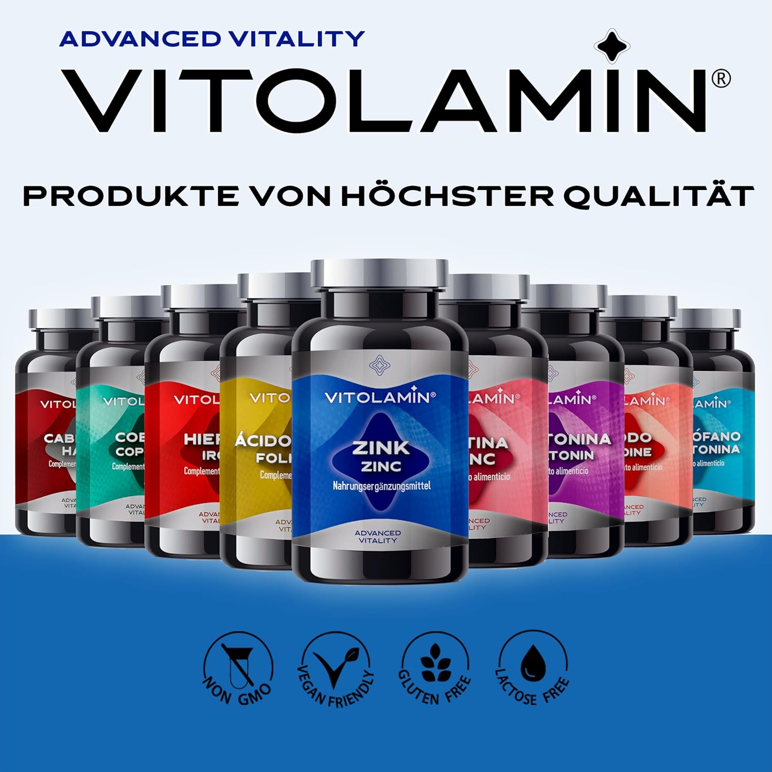 Vitolamine is een van de meest gerespecteerde merken in Spanje, die voedingssupplementen op het hoogste niveau voor verschillende gezondheidsproblemen aanbiedt. Een daarvan is het supplement met zink, een van de essentiële mineralen die het lichaam nodig heeft en de gezondheid van het metabolisme bevordert, inclusief huid, haar, nagels, hersenen enz.