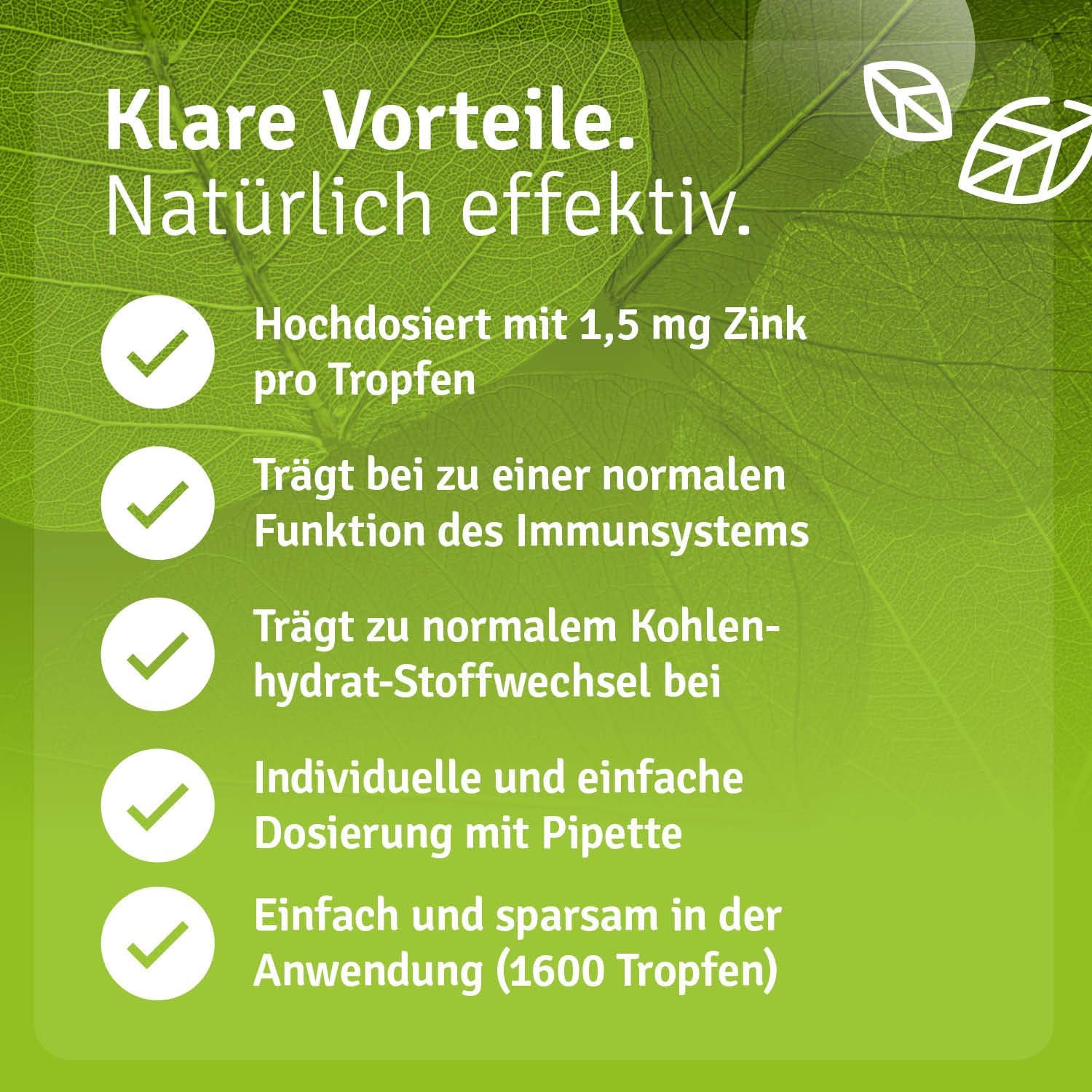 Veelzijdige toepassing: zink vloeibaar is veelzijdig in zijn werking. Zo draagt zink aantoonbaar bij aan de normale werking van het immuunsysteem en het behoud van normale huid, haar en nagels.