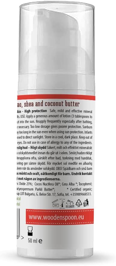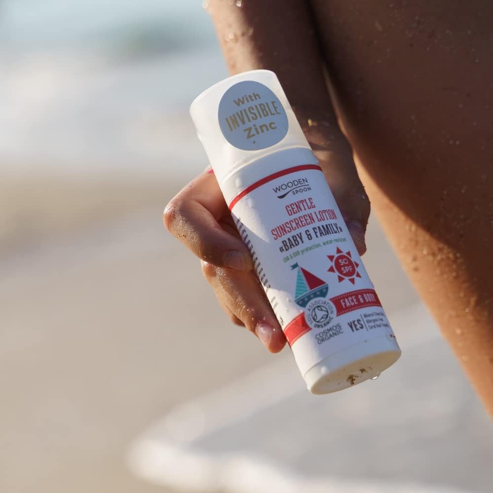 De Natuurlijke Zonnebrandcrème met Onzichtbare Zink SPF 50+ van Wooden Spoon is samengesteld uit 100% natuurlijke en biologisch gecertificeerde ingrediënten, en biedt een breed spectrum UVA & UVB bescherming zonder witte sporen. Geformuleerd met non-nano zinkoxide, biedt het een veilige en zachte zonbescherming voor het hele gezin. Verrijkt met biologische zonnebloemolie, kokosolie en sheaboter, hydrateert, voedt en kalmeert het de huid. Waterbestendig, hypoallergeen en oceaanvriendelijk, geschikt voor baby’s, kinderen en volwassenen.