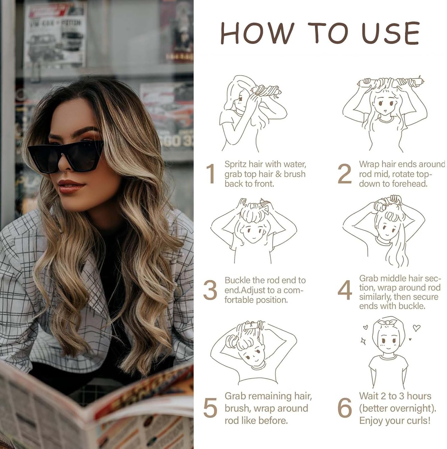 Stap 2: deze curlvormer is bijzonder geschikt voor degenen die hun haar tijdens het slapen willen blazen of stylen. Als je wakker wordt, ziet je haar er dikker en wolliger uit. Het is geschikt voor alle haartypes en texturen en het effect is bijzonder belangrijk voor schouderlang of langer haar.