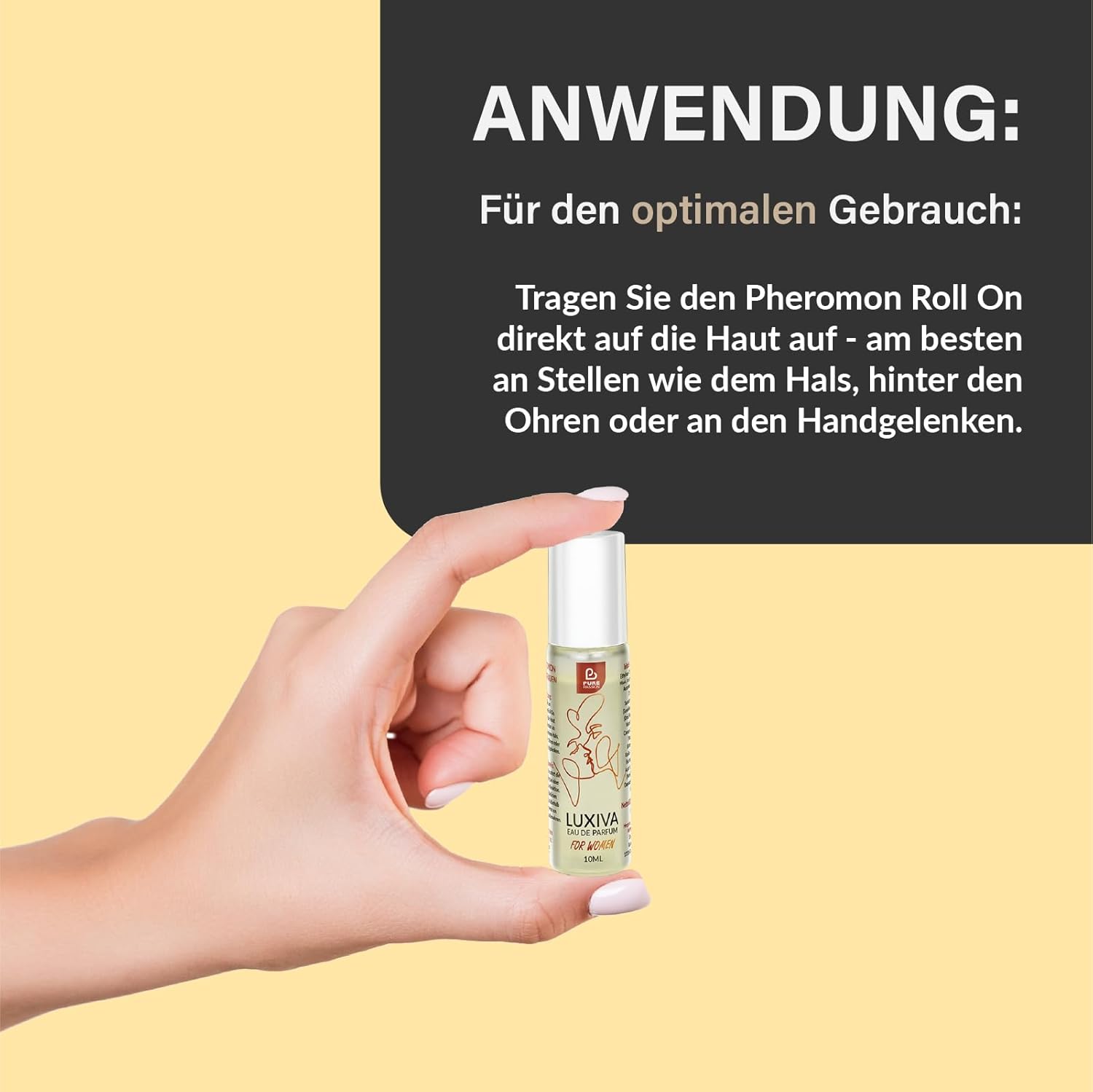 Apply the feromon Roll On directly to the skin, best in places such as the neck, behind the ears or on the wrists. The perfume takes time to develop. On the skin, this can take about 30 minutes, possibly 2-3 hours on the clothes.