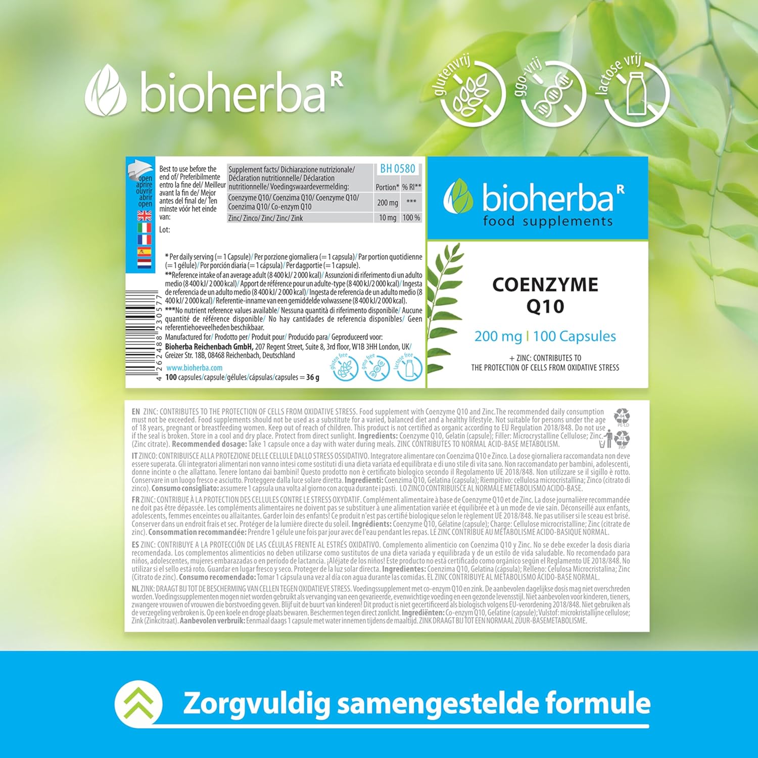 Q10 Capsules – 100 pieces high dose with 200 mg Coenzyme Q10 and Zinc for cell protection against oxidative stress – BIOHERBA
