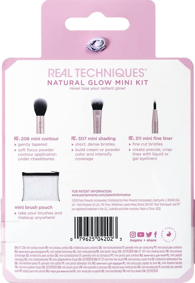 Real Techniques Limited Edition Natural Mini Glow Holiday Kit, Stocking Stuffer, Soft Hairs, Luxury Skin Care and Makeup Tool Kit, 4-Piece Gift Set