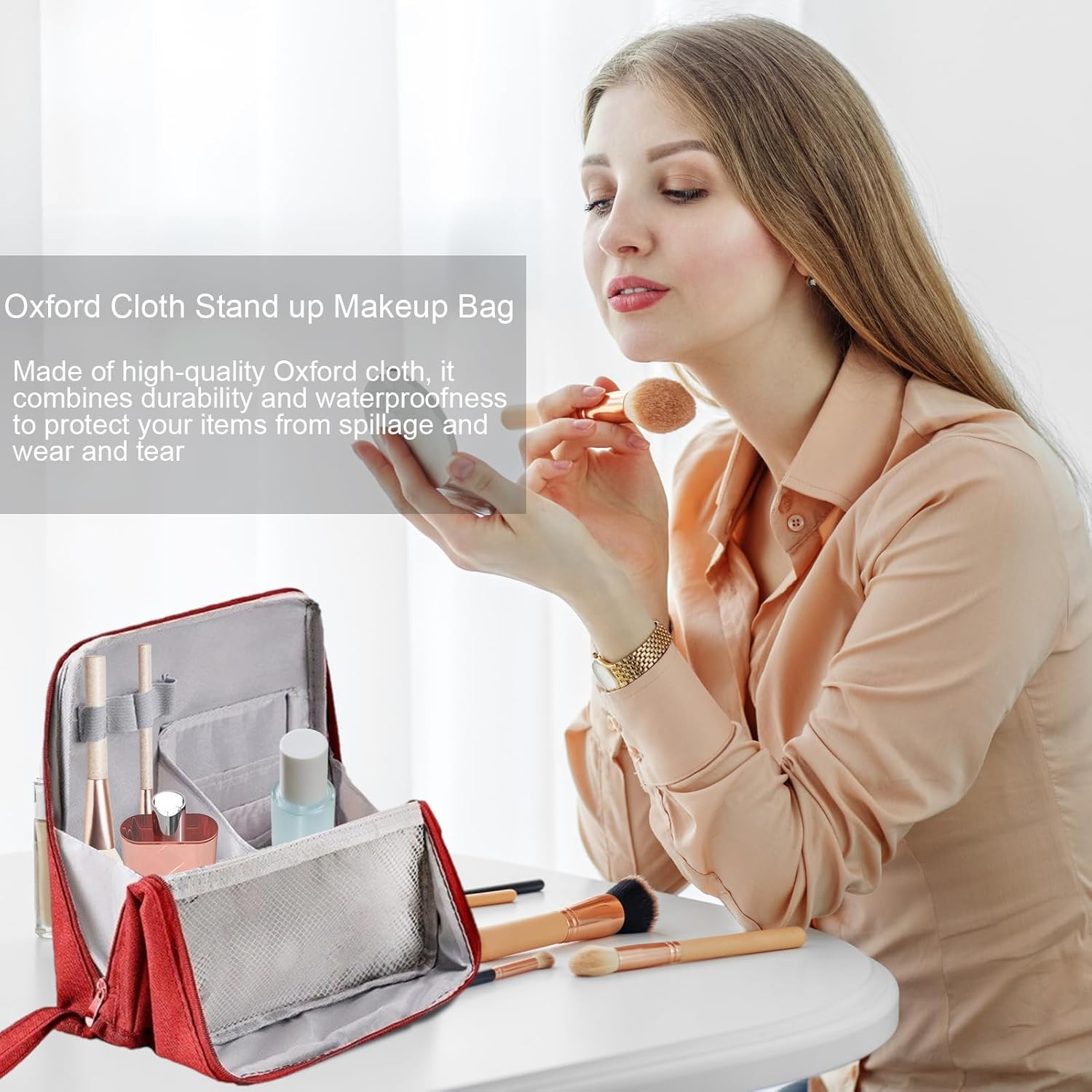 Stevige constructie: gemaakt van Oxford-stof, beschermt deze morsbestendige organizer je make-up en toiletartikelen, met een stevige rechtopstaande toilettas die bestand is tegen waterschade en betrouwbare solide opslag biedt voor al je schoonheidsbehoeften