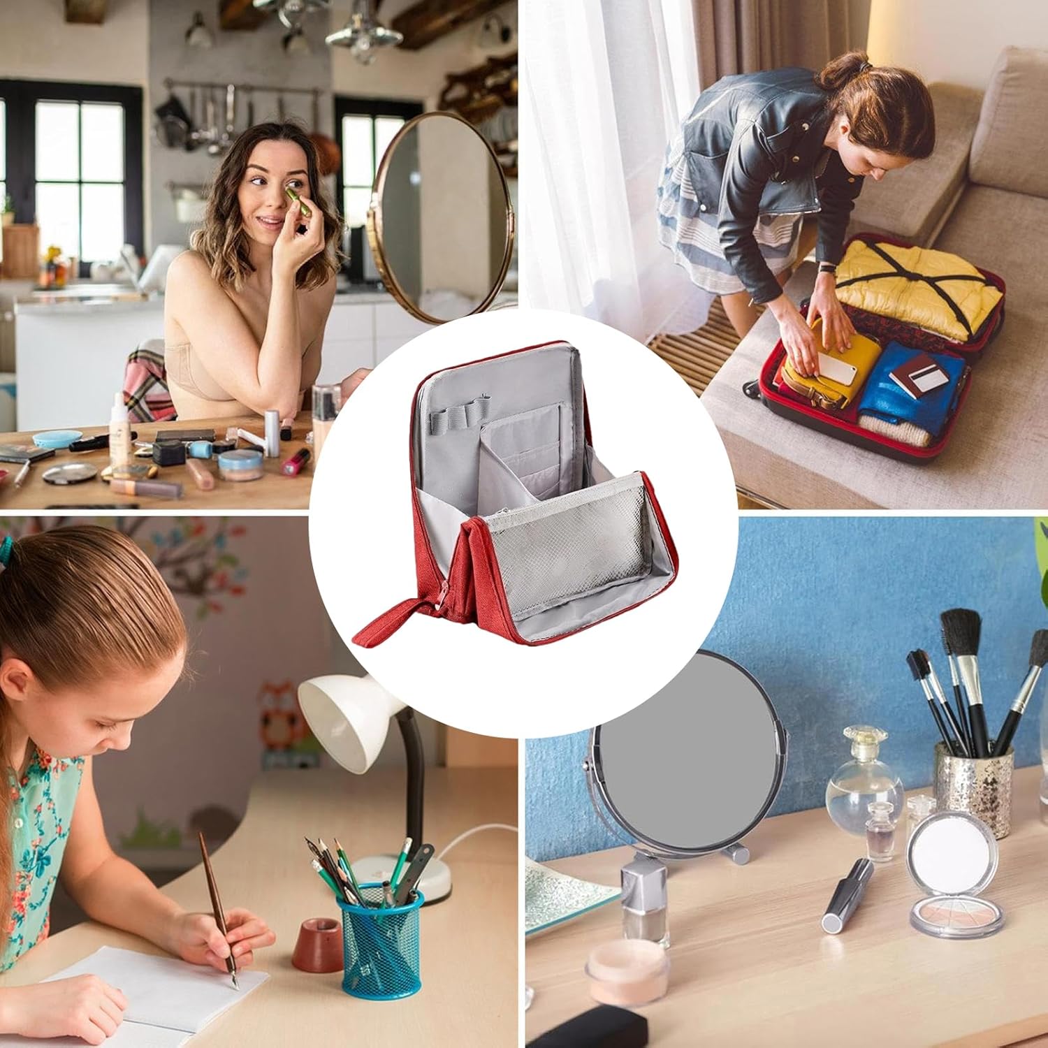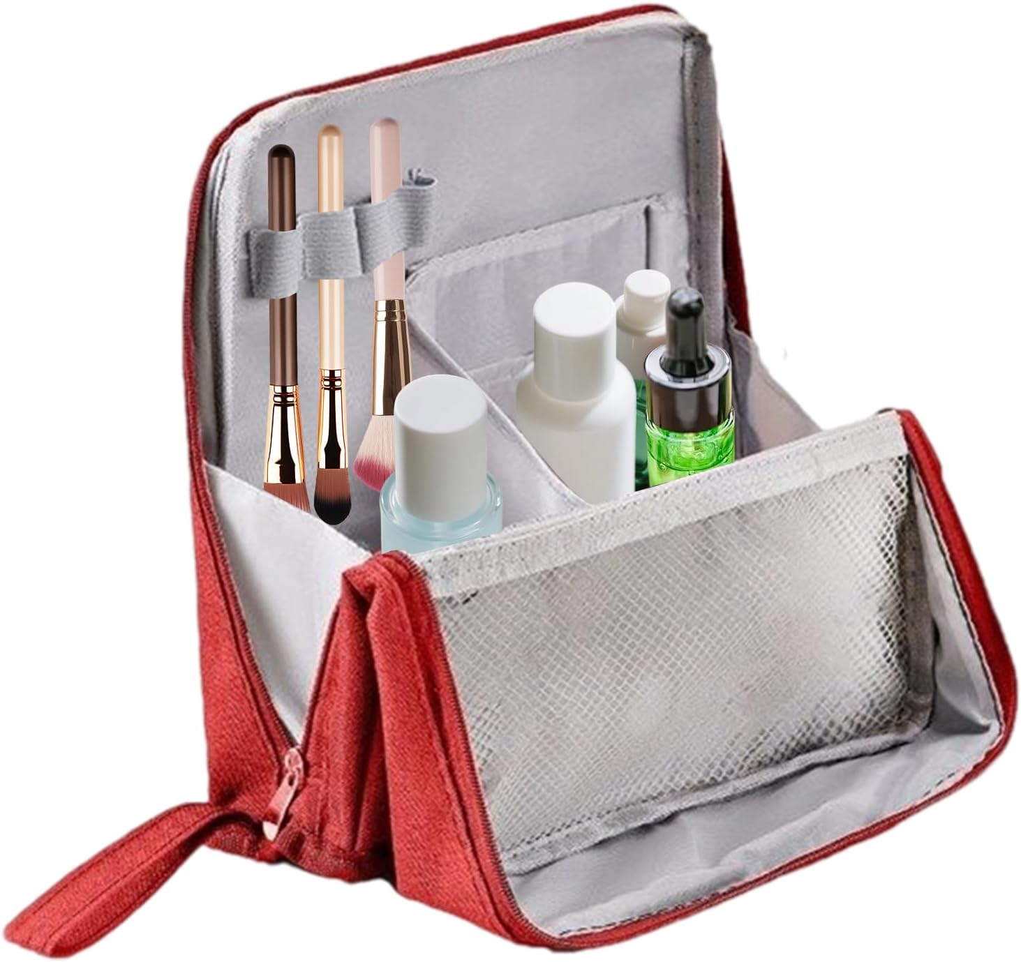Zorgvuldig ontworpen: dit kantelbestendige ontwerp zorgt ervoor dat de toilettas stevig op elk oppervlak staat en functioneert als vrijstaande make-uptas en reisvriendelijke organizer om schoonheidsbenodigdheden altijd netjes en binnen handbereik te houden