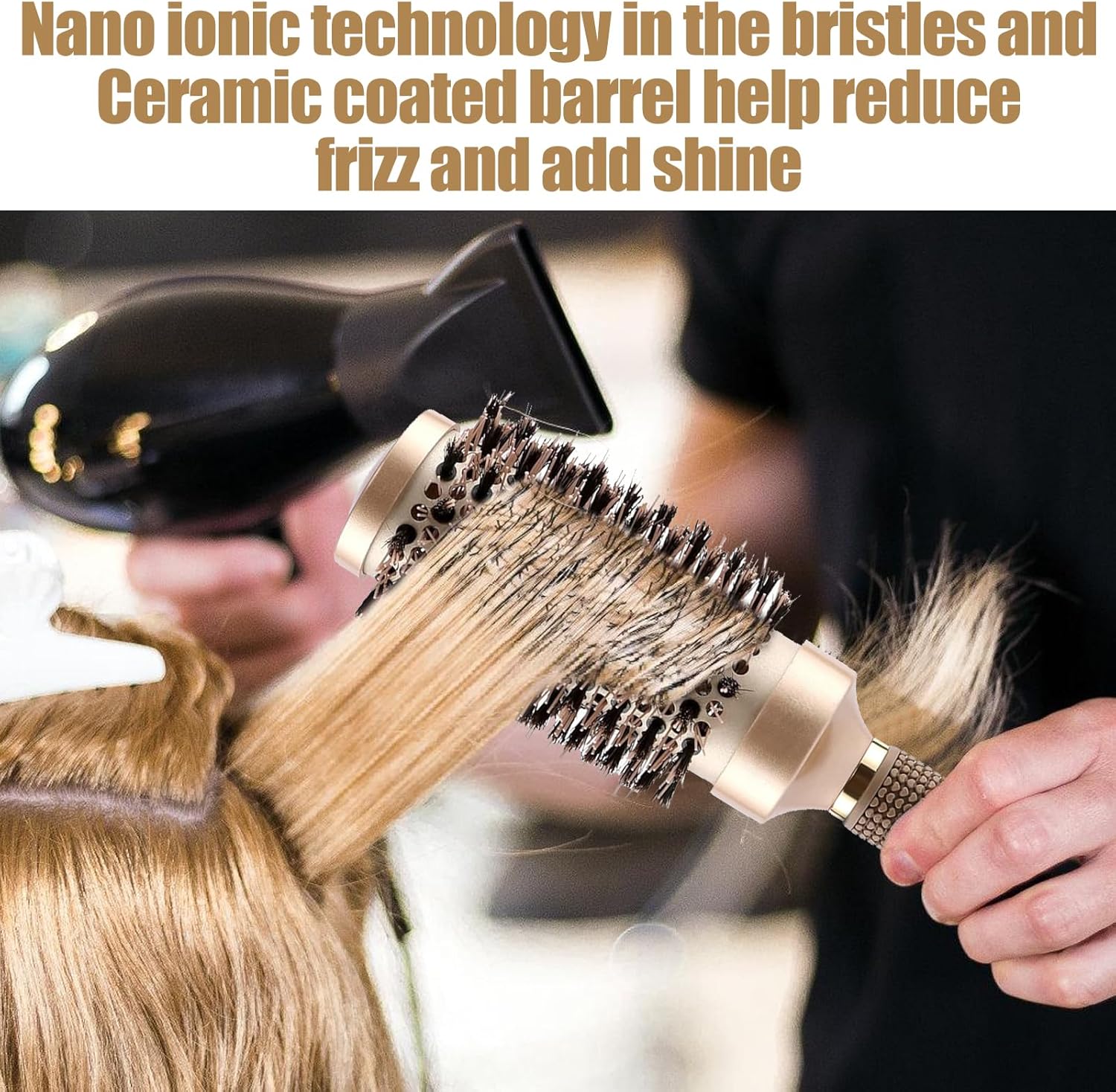 Quick-drying, less frizz: Ceramic coated curlers have large ventilation holes to distribute heat evenly and dry hair faster. This thermo-ceramic hair brush uses nano heat technology with ceramic ions. Boar bristle brush releases negative ions when heated, which can reduce static electricity and frizz, making hair shinier