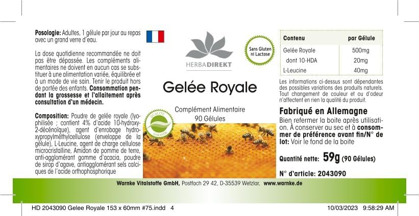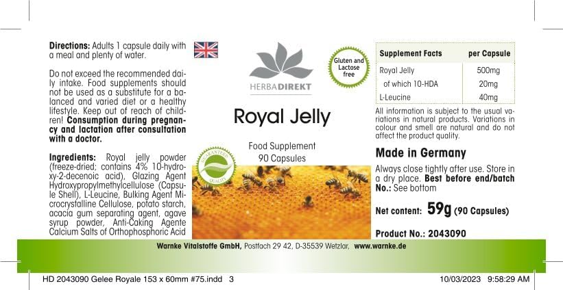 Excellent value for money for German quality – Herbadirekt – GELÉE ROYALE EXTRAKT – 4:1 500mg of 2000mg Royal Jelly