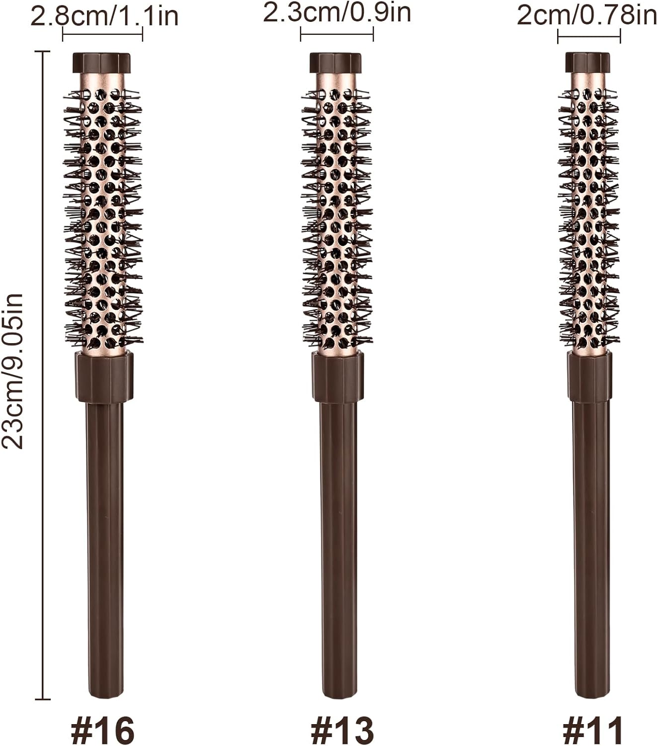 Packaging: Rzspher you will receive 3 round brush barrels with the dimensions 23 × 2.8 cm, 23 × 2.2 cm and 23 × 2 cm to meet your different requirements