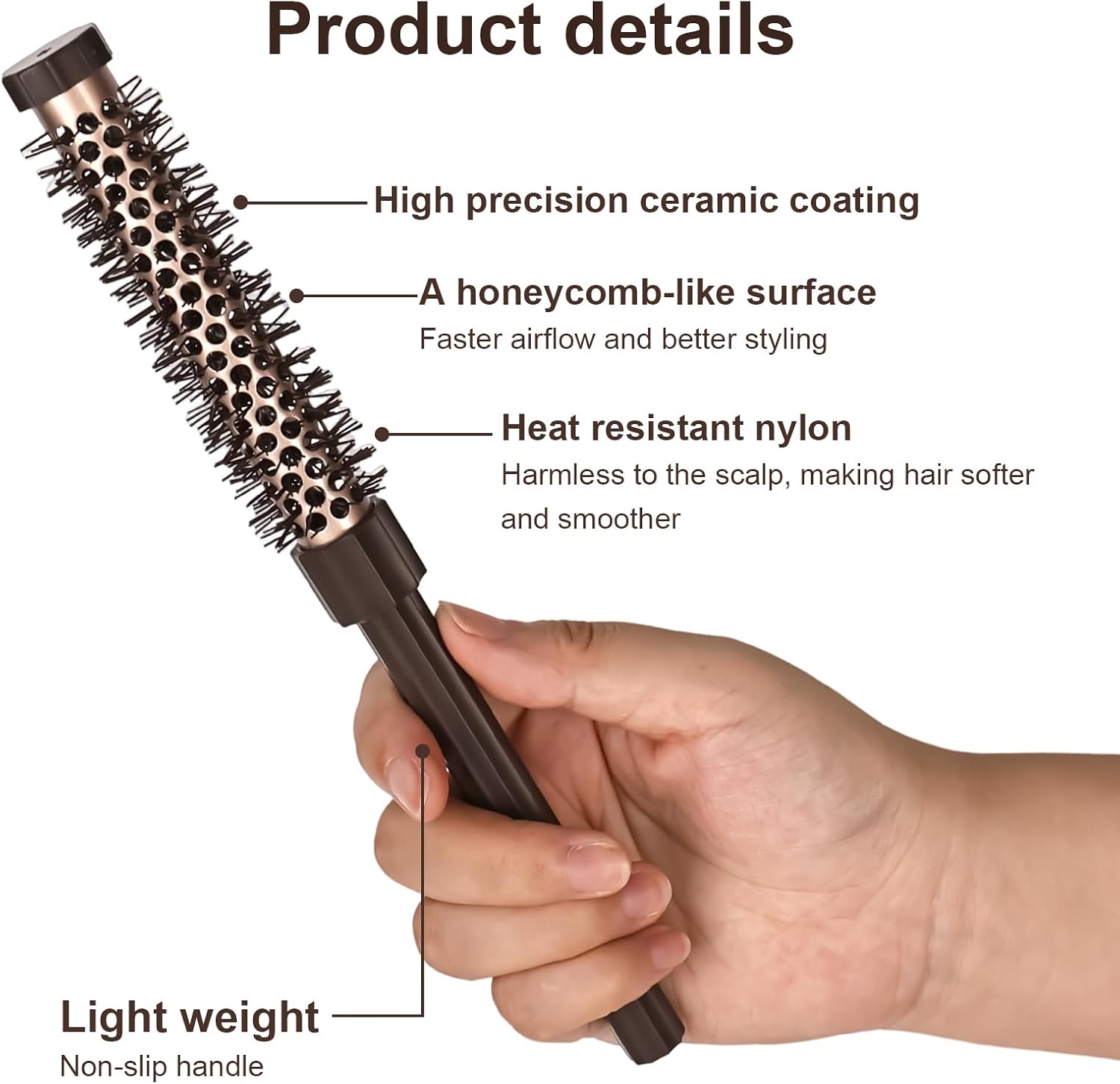 High-quality materials: Rzspher Our round hair brush is made of high quality materials such as ABS, aluminum tube, nylon etc. This high-point styling roller brush with honeycomb structure is of reliable quality and has a long service life. The honeycomb modeling roller is medium size, can be easily stored, saves space and can meet different modeling needs