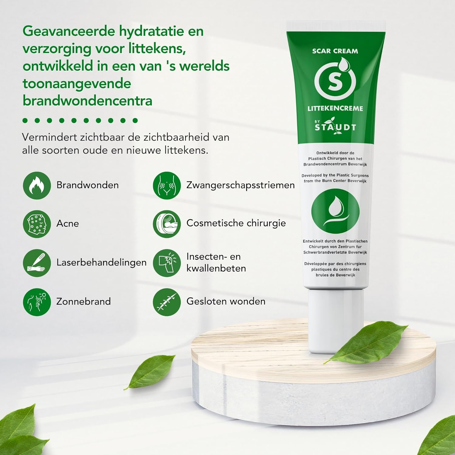 At Staudt we offer effective solutions for damaged skin. Our premium scar and hand creams, developed by plastic surgeons in a leading burn center, have user satisfaction of 90%+. We support the Dutch Burns Foundation, promote research and donate products to burn patients.