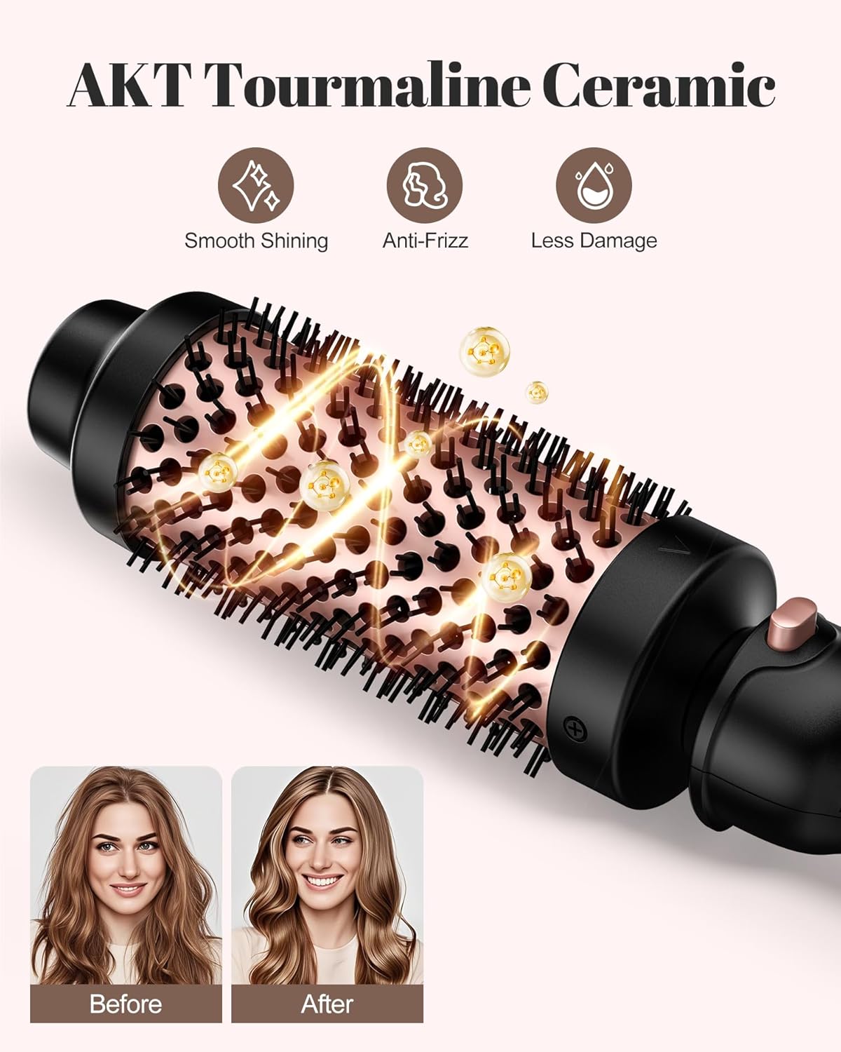 Reduce Heat Damage by 75%: This innovative brush is infused with argan oil, keratin and tourmaline, which release negative ions. These ions play a critical role in minimizing heat damage and taming frizz. The design of the brush ensures even heat distribution, effectively retaining moisture. The result is that your hair remains smooth, shiny and looks healthy, so you can style it with confidence knowing that you are protecting your strands.