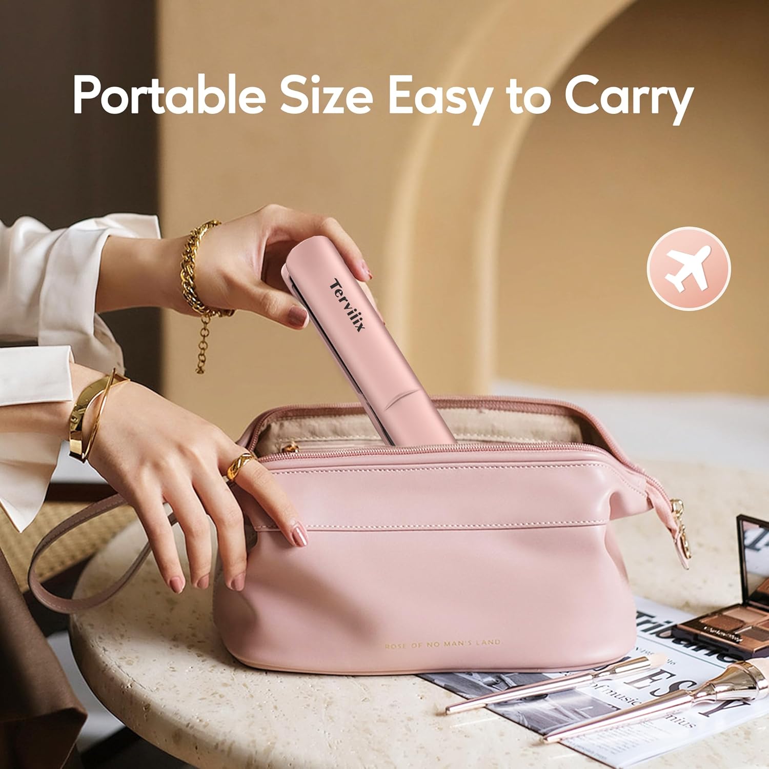 Terviiix USB Mini Travel Straightener, Wireless, Max 220°C Portable Hair Straightener, Rechargeable, 2-in-1 with Argan Oil, 4500mAh Battery, 50 Seconds Fast Heating