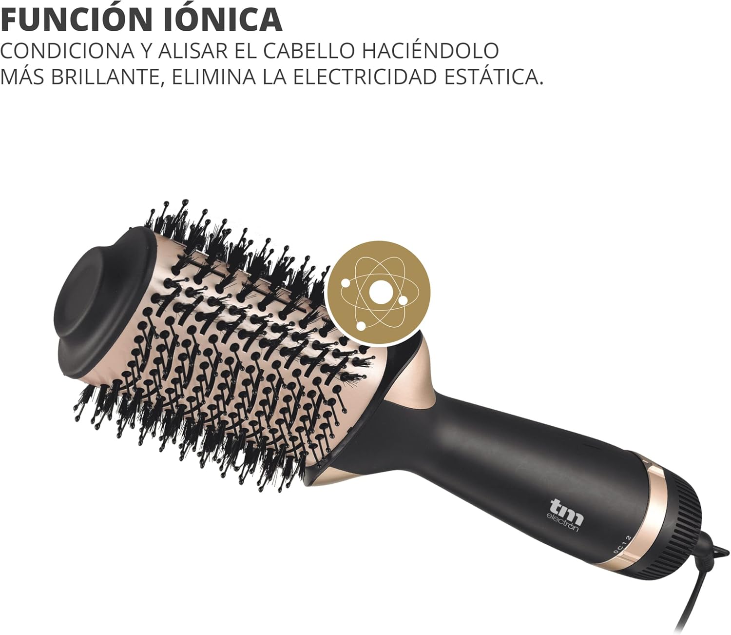 TM Electron TMHD102 electric styling brush with ceramic coating, ion function, 2 heat settings and cold air, oval design, nylon teeth and swivel cable. Electric styling brush with high-quality ceramic coating for even heat distribution. The overheating protection system keeps the ideal temperature. In addition, it protects your hair from heat with its ion function. Removes static electricity for soft and shiny hair. The brush has 2 temperature levels to adjust at any time. With cold air to highlight your hairstyle. The oval design makes it possible to smooth the hair, give volume to the roots and curl the ends. Style in minutes and use with just one device. The teeth are made of nylon, which protect the finest hair from breakage. The rounded finish also protects your scalp. The swivel cable allows you to use the brush in the position that fits you best. Forget knots that can damage your brush.