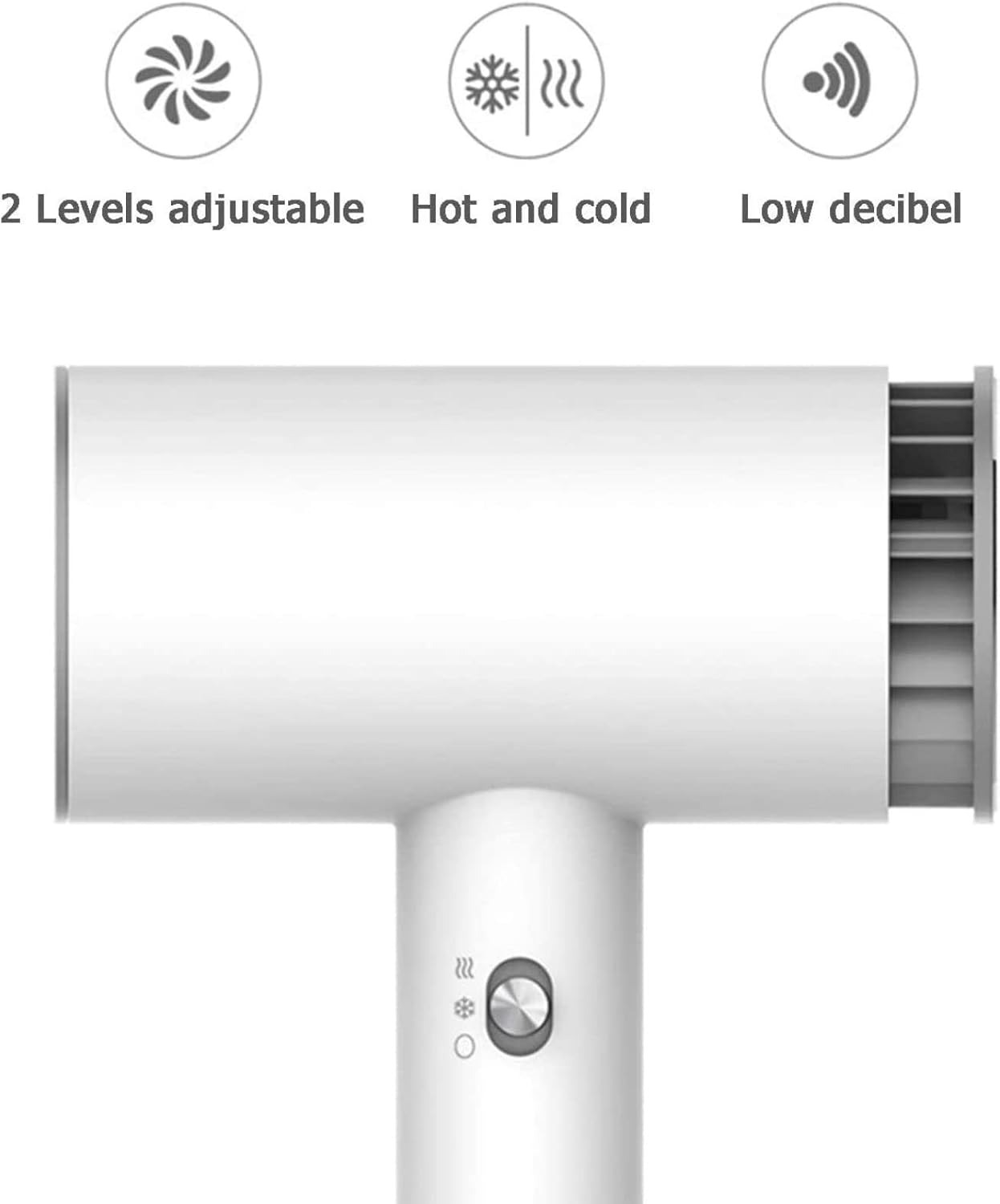 2 mode settings. Hot and cold with double use. When powered by lithium battery, it provides cold wind when plugged in socket, it provides hot wind (1 gear) and cold wind (2 gear).
