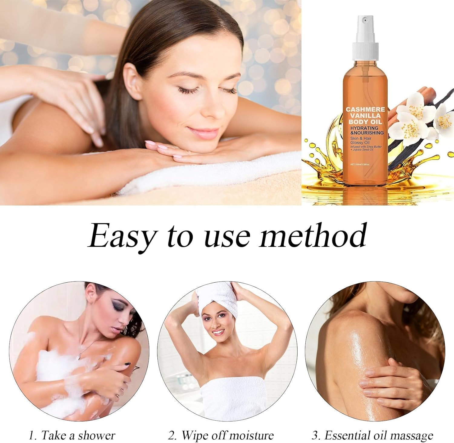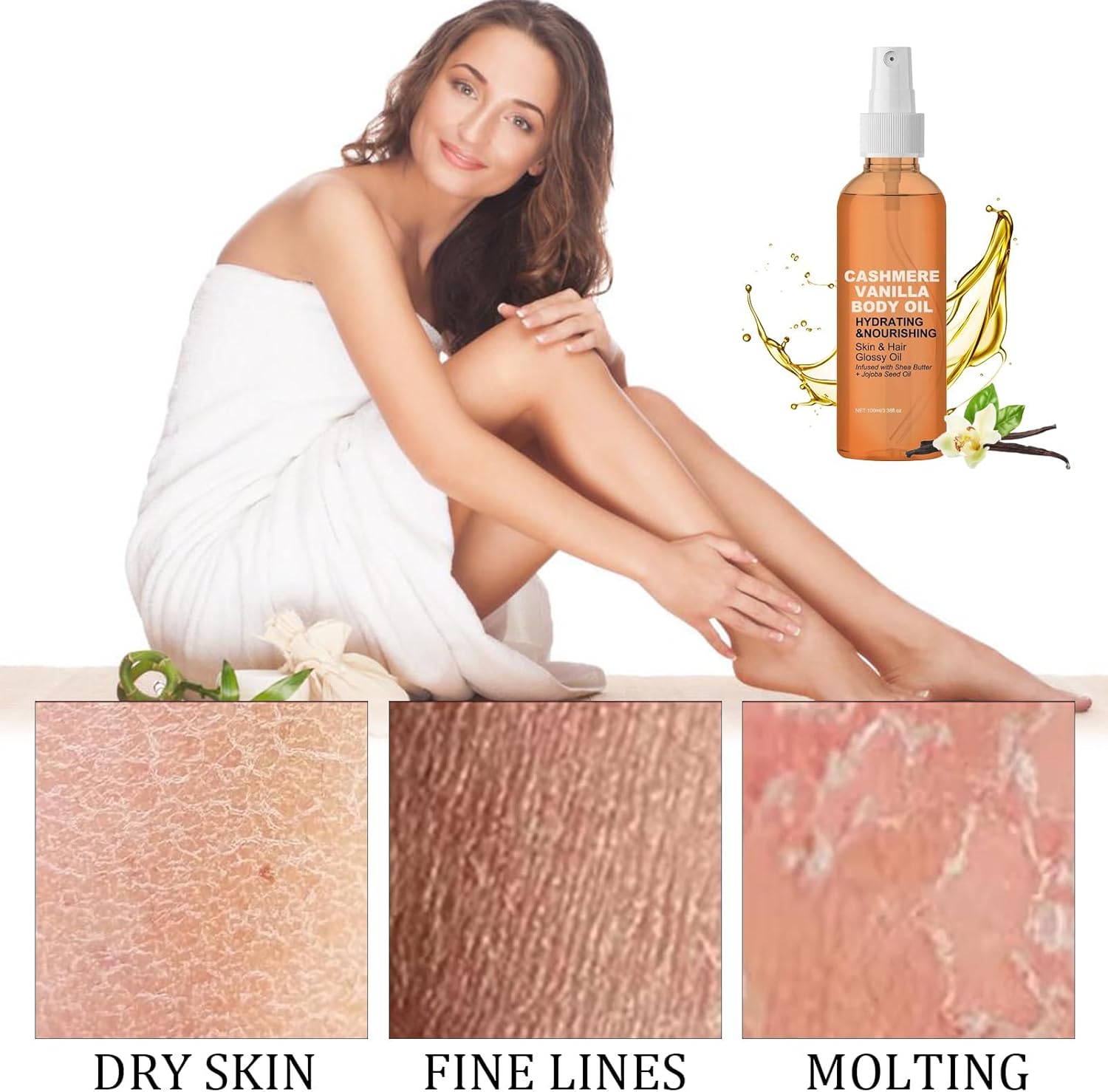 Deeply nourishing: Vanilla cashmere body oil combines rich ingredients such as shea butter and jojoba seed oil to deeply hydrate and rejuvenate dry skin and hair and ensure a silky feel