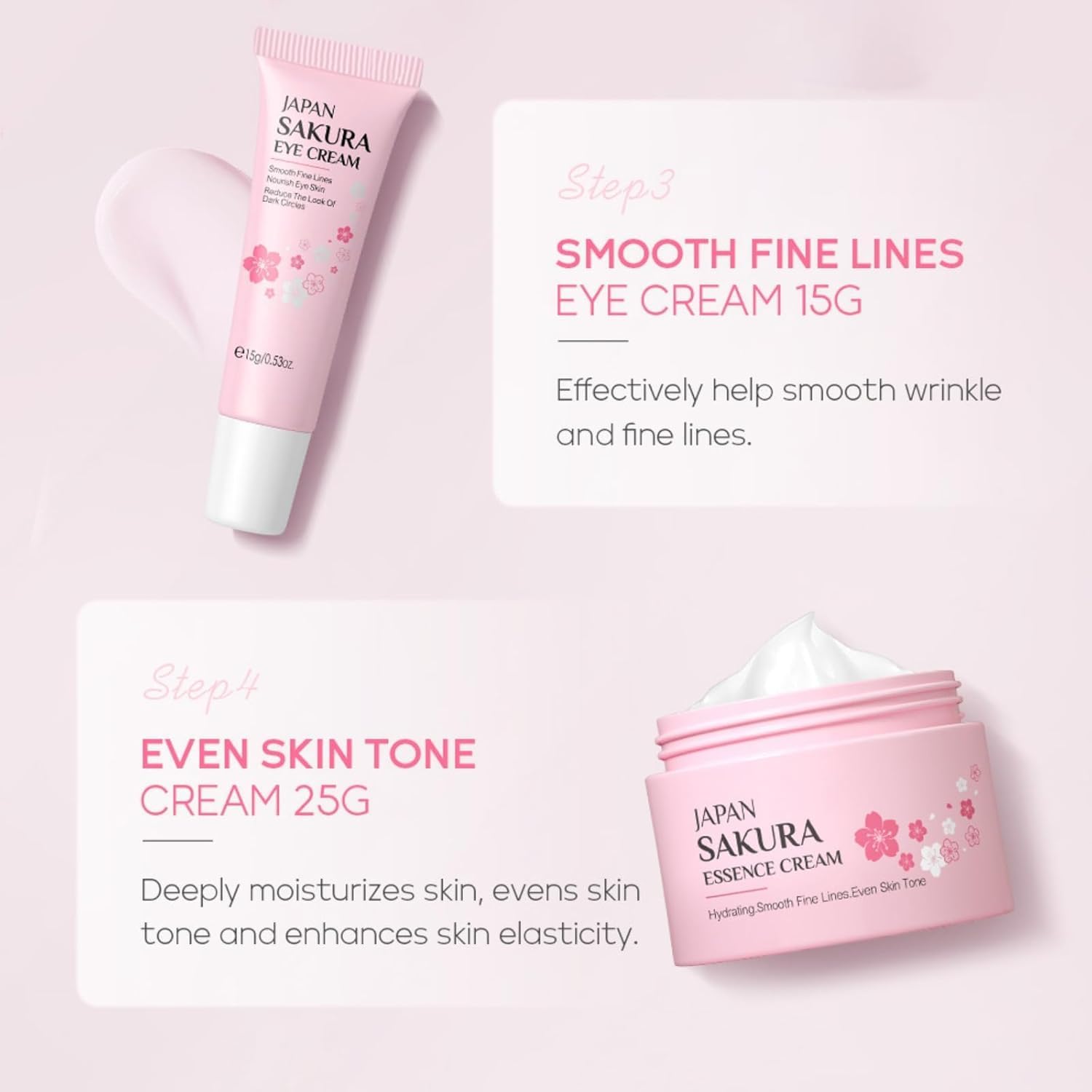 Rich in Cherry Blossom Extract: This care kit is enriched with cherry blossom extract, which effectively reduces pores, regulates the skin’s water and oil balance, refreshes and repairs the skin and reduces fine lines.