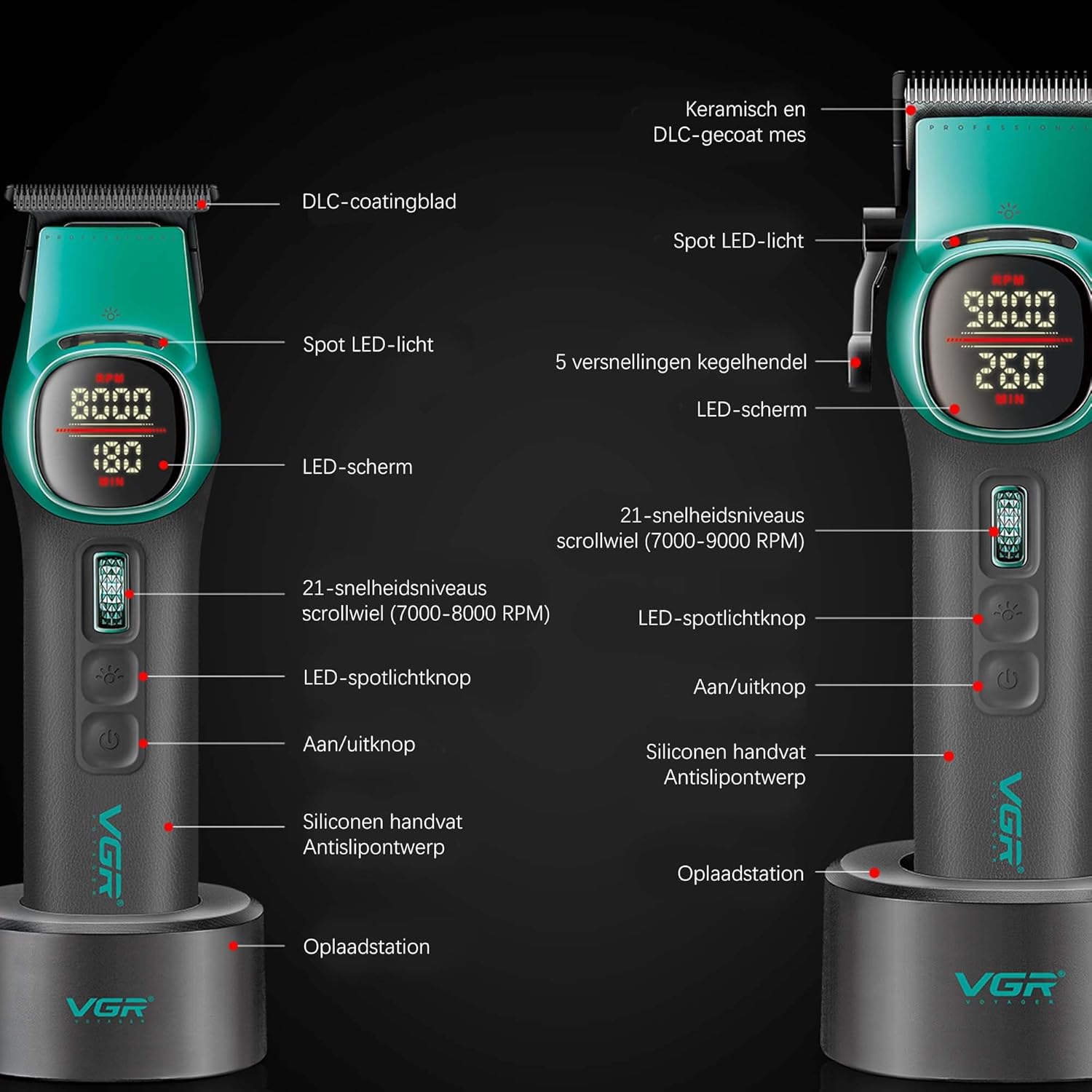 Powerful Brushless Motor & 21 Speeds: This hair trimmer set features a powerful, brushless motor that is durable. The trimmer has an adjustable speed range from 7000 to 9000 rpm and the trimmer has an adjustable speed range from 6000 to 8000 rpm. The 21 speeds allow you to precisely match performance to any hair type or haircut style. Smooth and precise speed control ensures a close shave and prevents overheating