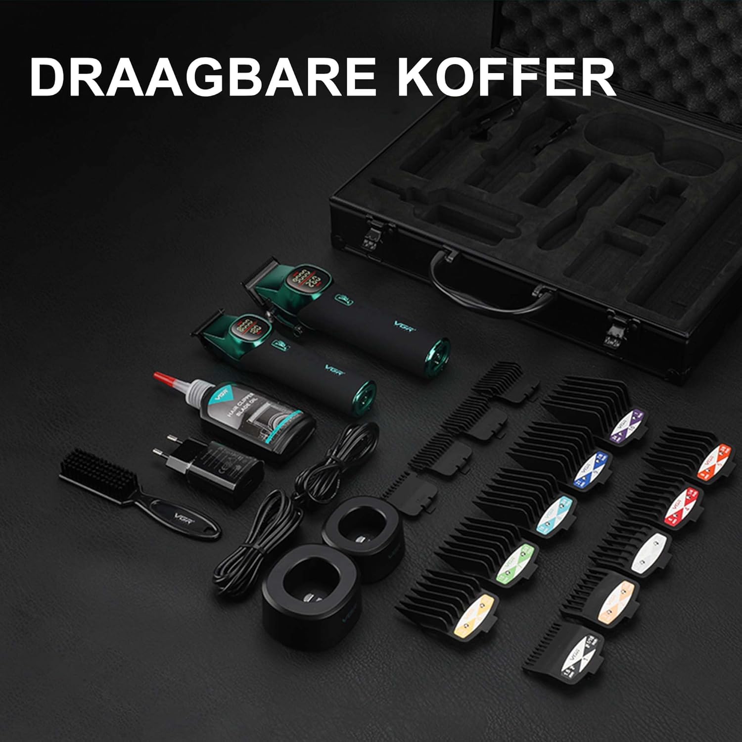 Complete cutting set with adjustable comb attachments: This cordless hair trimmer set includes a hair clipper, trimmer, two charging stations, two USB cables, lubricant, cleaning brush and adapter. The clipper has a tapered bar (1-3 mm) and 10 combs (1.5-24 mm), ideal for fades, layering and haircuts. The trimmer has 4 attachment combs (1.5-6 mm), perfect for trimming face, body, beard and hairline