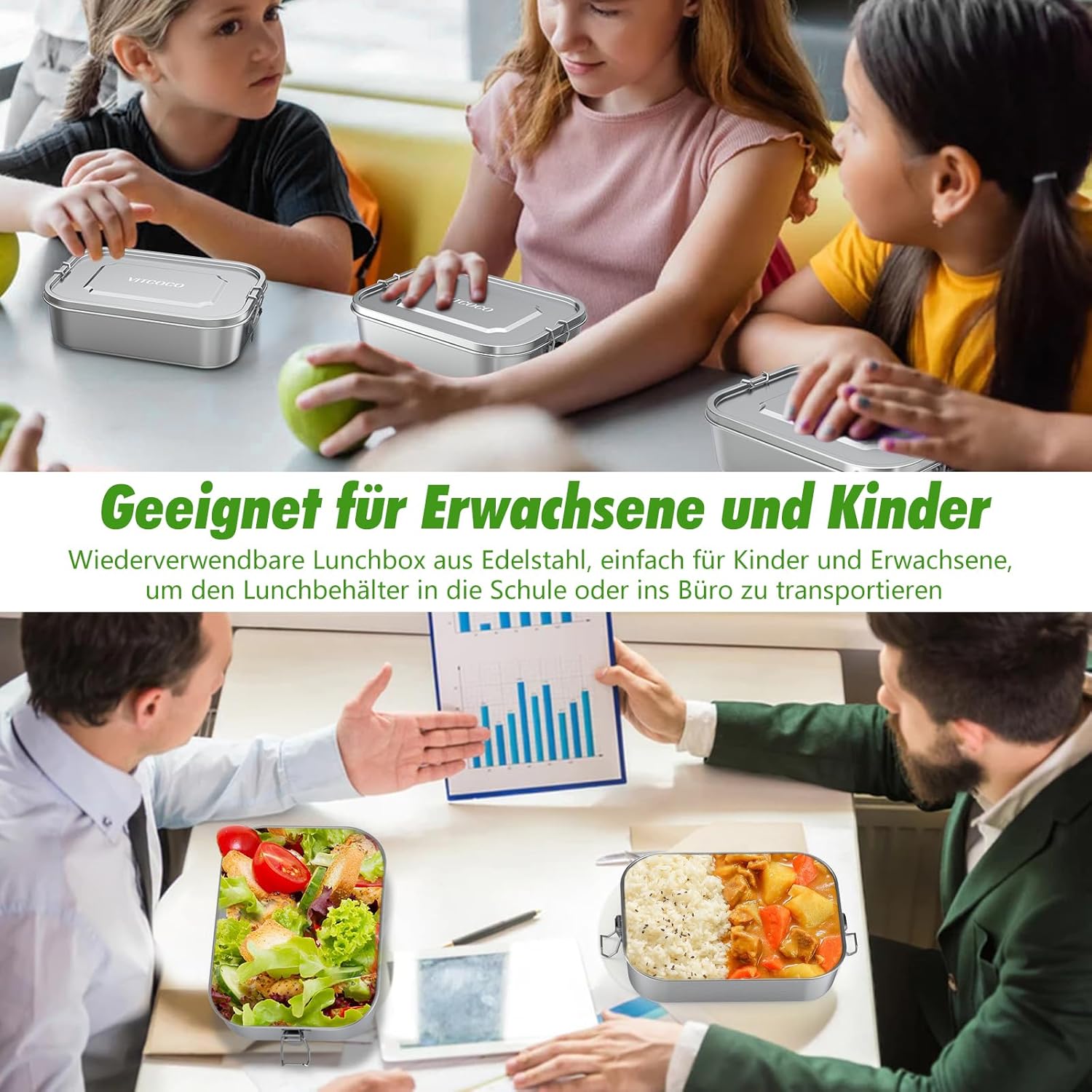 Multi-purpose: This roomy lunch box with safe clips is made of high quality 304 stainless steel, making it ideal for storage even as oily, greasy, salty or acidic food stored in the fridge for days;