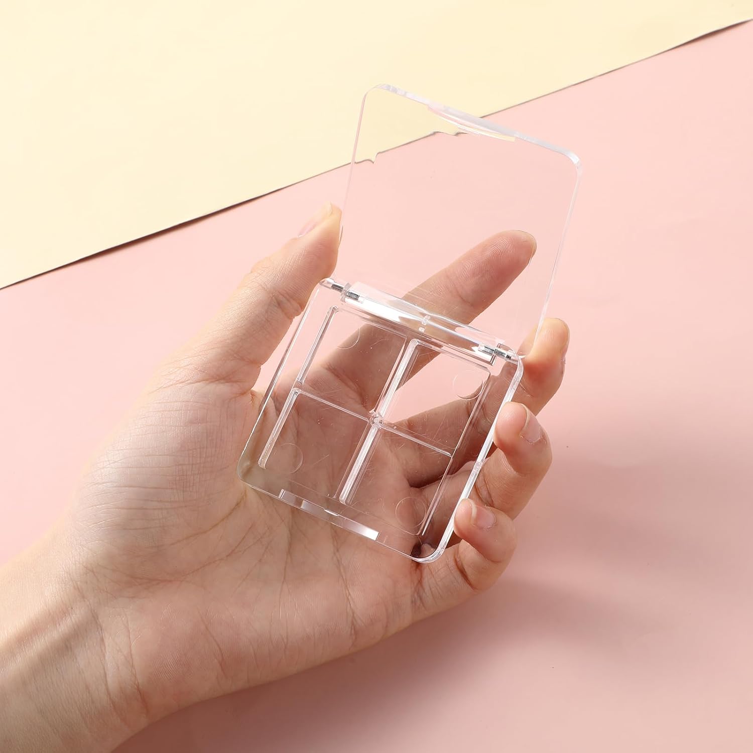 Inhoud van de verpakking: Je zult dol zijn op deze 2-delige transparante 4-kleuren oogschaduw doos! Deze depotmake-up containers ontworpen met vier roosters om verschillende kleuren op te slaan, en het deksel past perfect op de rand, het afdichten van het poeder goed om onnodige lekkage te voorkomen. Dit lege make-uppalet is een must-have voor dagelijkse make-up
