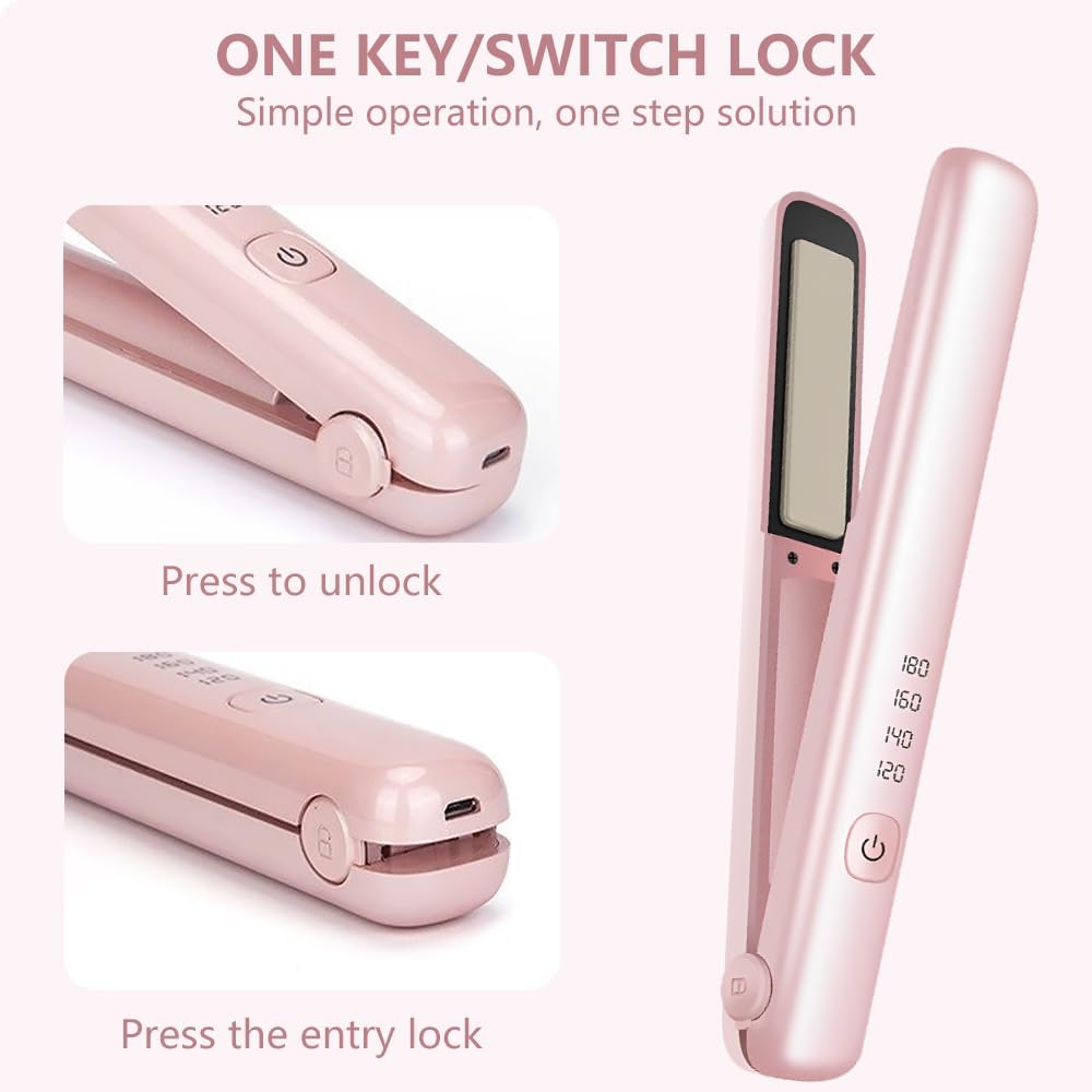 【Hair Straightener & Curler in One】This wireless hair straightener can style and curl your hair. This dual function mini curling iron can effectively style, volume, curl or style your hair, whether at home or on the go. Ideal for bangs, fine hair, facial hair and short hair. (Suitable for quick styling, but does not replace corded straighteners.)