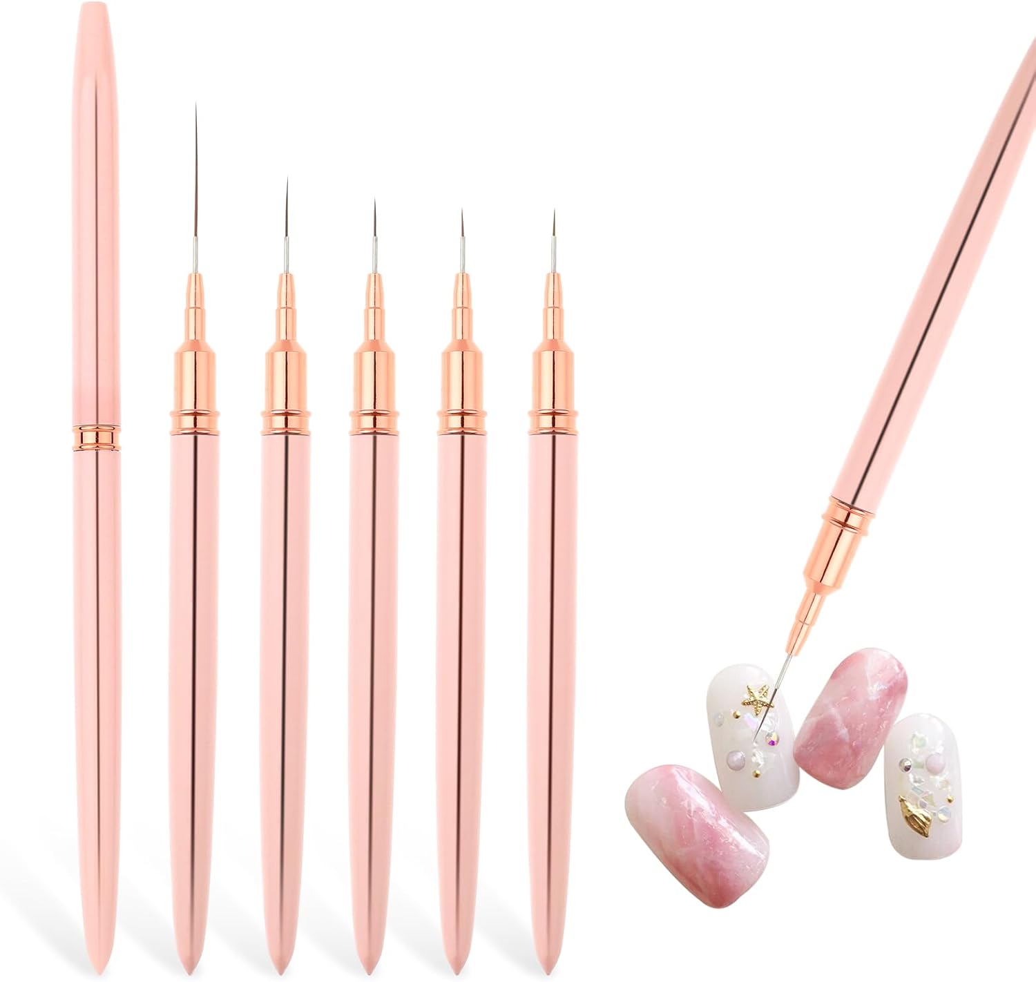 【What You Get】Nail liner brush consists of 5 pieces nail art line pens, sufficient quantity and different styles, nail art set enough for your daily replacement or use, you can also share the nail lining brush with your family or friends.