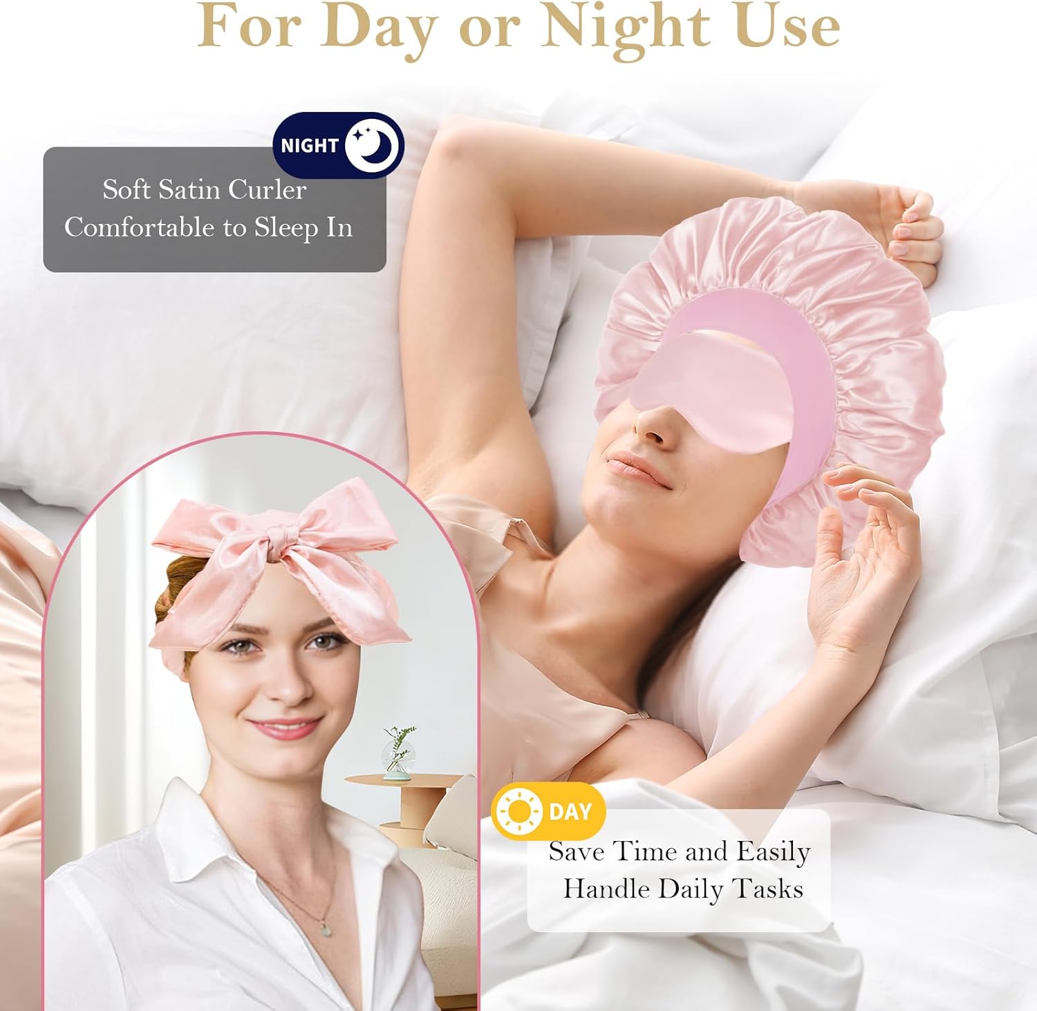 Hold curls all day: the soft satin material helps maintain the curl shape throughout the day. Moisten your hair before use, wrap it around the curly headband and secure for 4-6 hours or overnight. A touch of styling spray can help hold curls longer