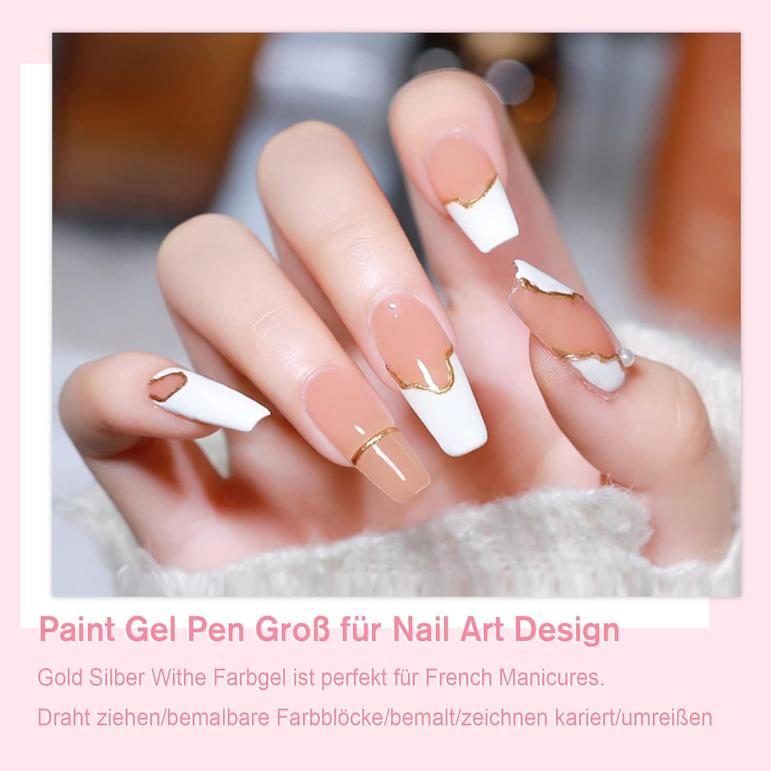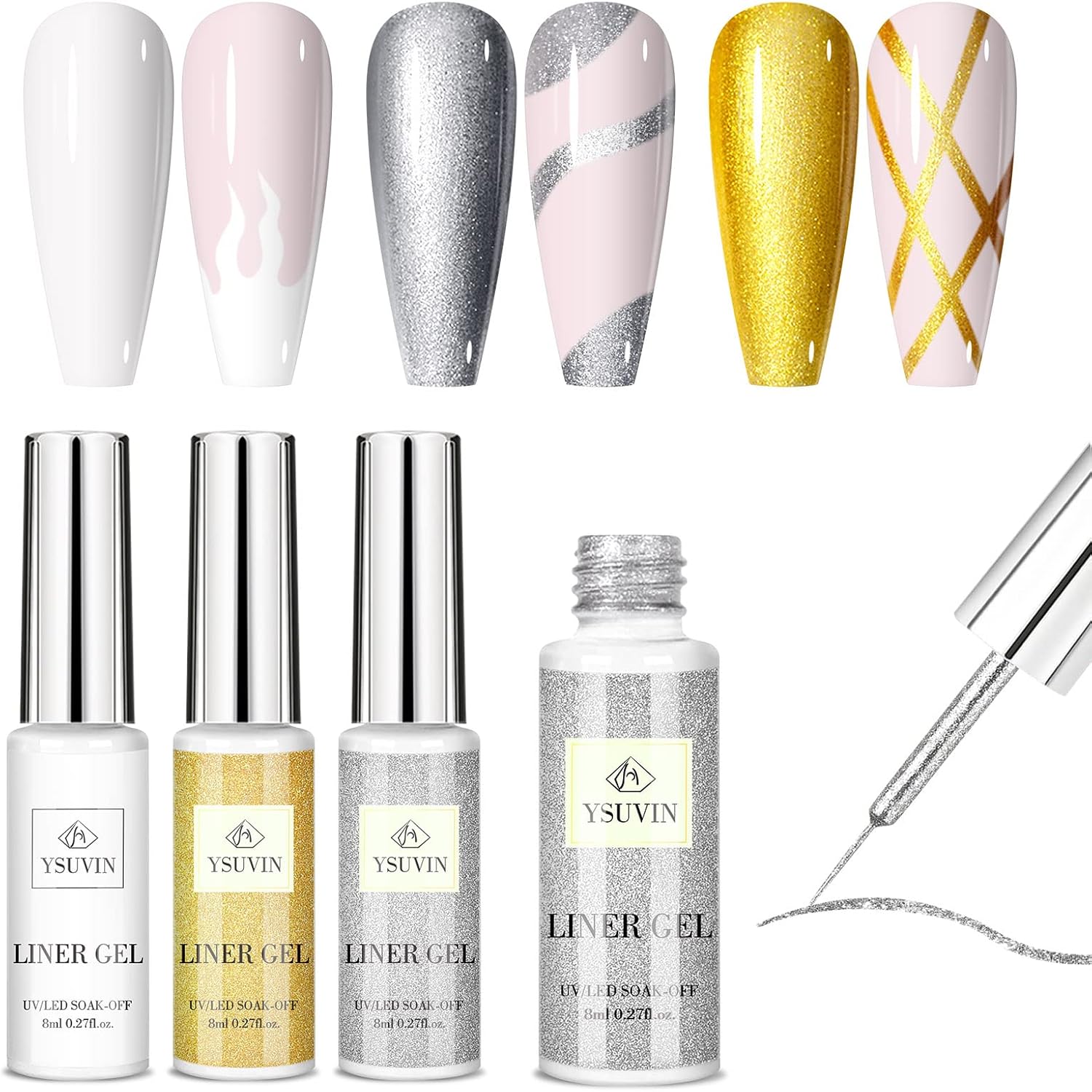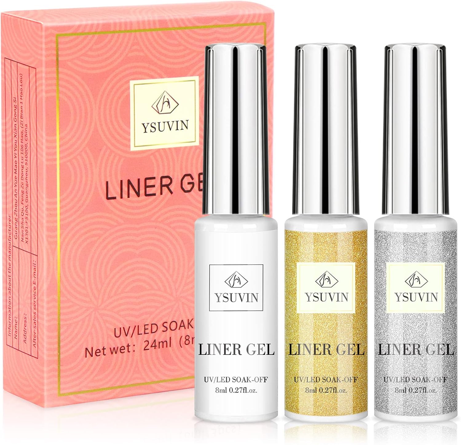 Gel Liner UV Nail Polish: This gel liner nail set contains unique bottles and 3 PCS color liner nail polish. Gold, silver and white 3 classic colours for different nail designs.