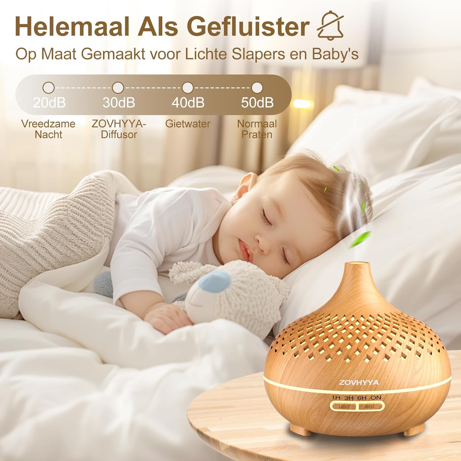 Large Capacity And Extra Long Working Time: ZOVHYYA aromatherapy diffuser has a capacity of 500ml and can be used continuously for up to 10 hours (minimum mist time) when filled. The diffuser spreads the aroma in a room of 10㎡, improves sleep and effectively eliminates odors