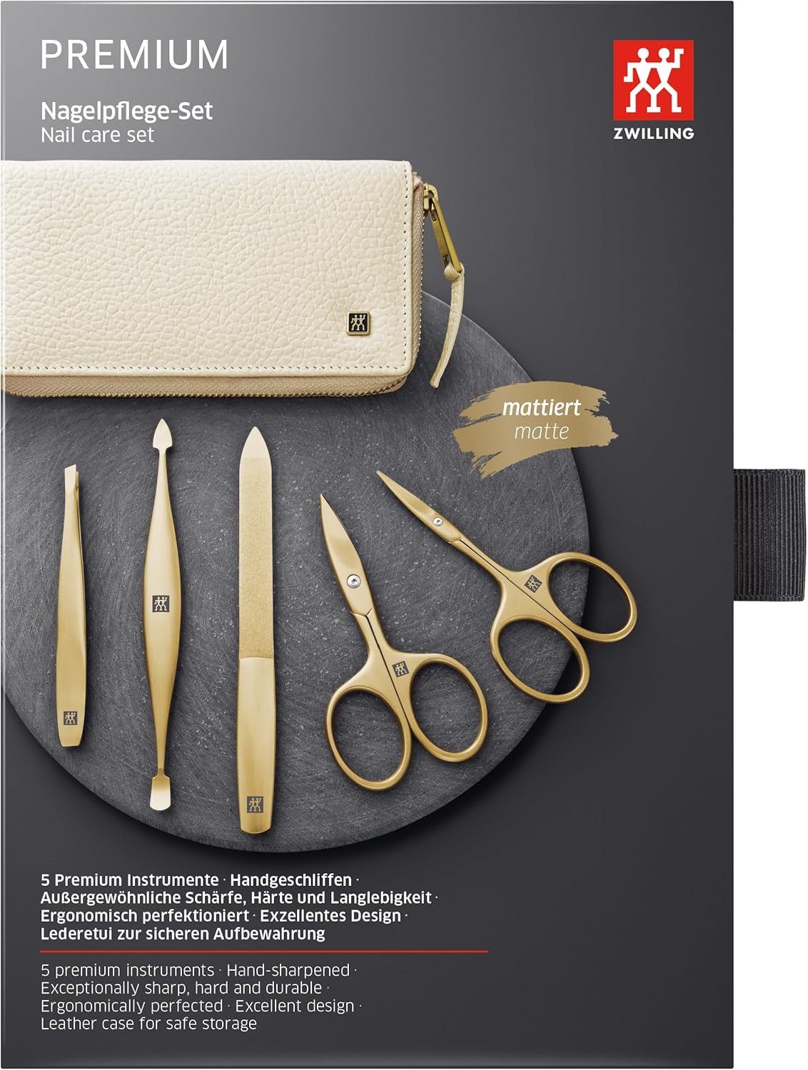 ZWILLING Manicure Set (5-Piece Genuine Leather Case Travel Set with Nail Scissors and Cuticle Scissors) Premium Gold Edition